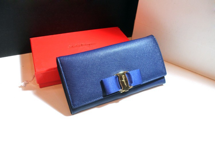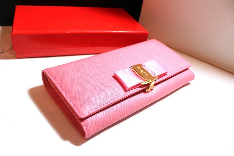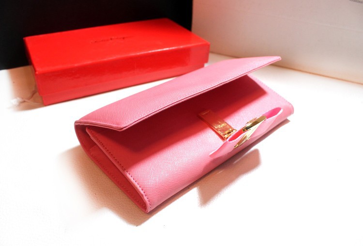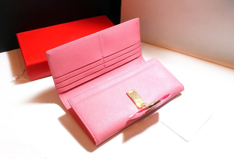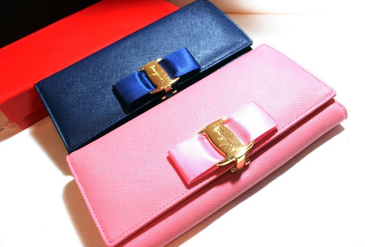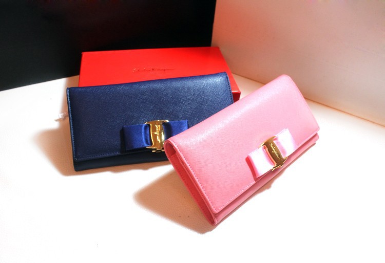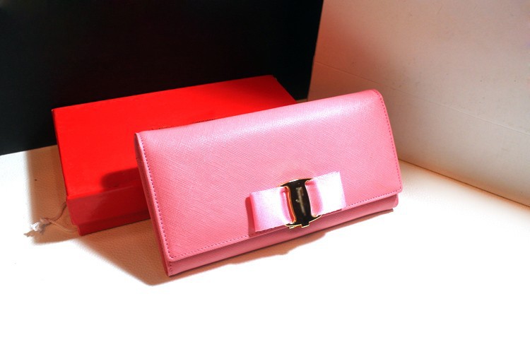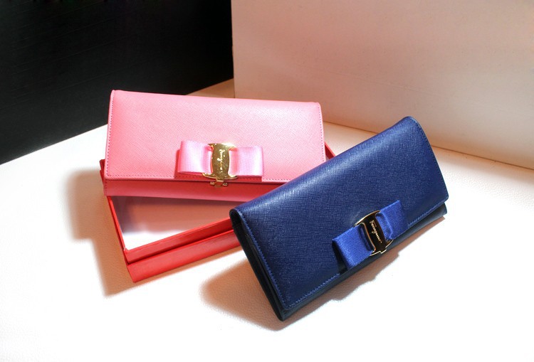 Luxury Salvatore F Brand Women Genuine Leather Classic Hasp Bow Clutch Wallets Saffiano Cowhide Purse Card Holder