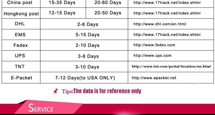 | Seller Service | On-time DeliveryIf you do not receive your purchase within 60 days, you can ask for a full refund before order completion (when you click "Confirm Order Received" or exceed confirmation timeframe). |