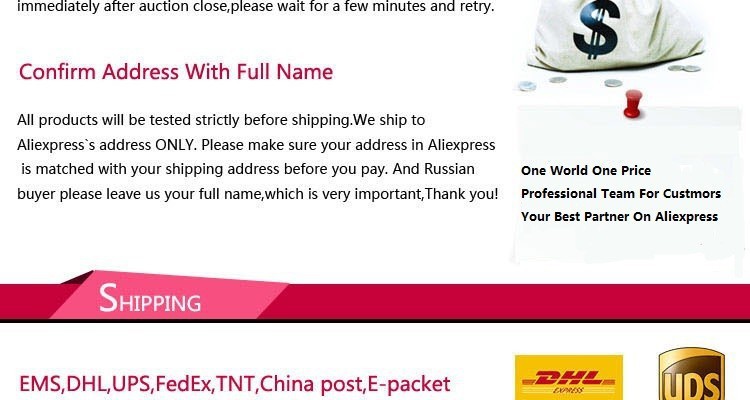 | Return Policy | If the product you receive is not as described or low quality, the seller promises that you may return it before order completion (when you click "Confirm Order Received" or exceed confirmation timeframe) and receive a full refund. The return shipping fee will be paid by you. Or, you can choose to keep the product and agree the refund amount directly with the seller. N.B.: If the seller provides the "Longer Protection" service on this product, you may ask for refund up to 15 days after order completion. |