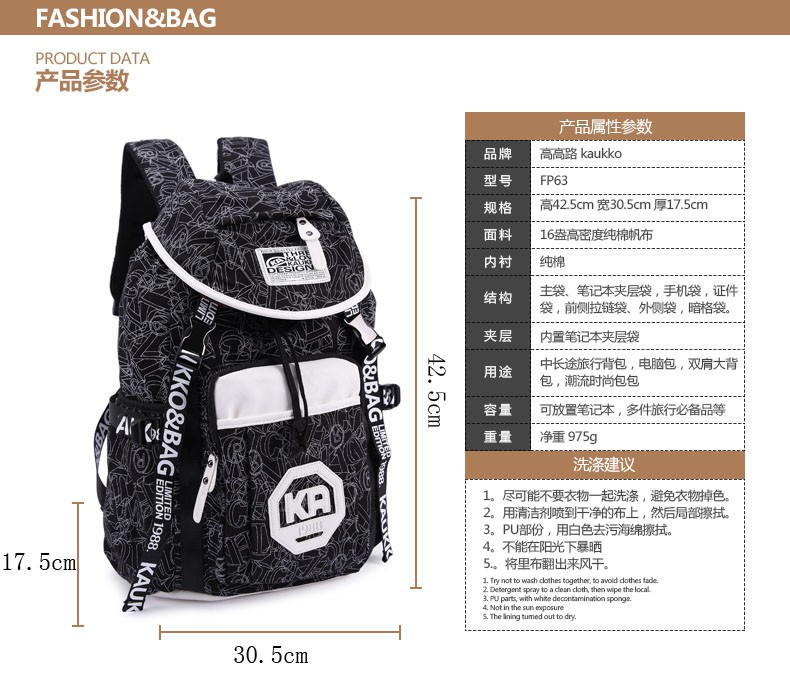 Man fashion personality canvas backpack leisure sport shoulder bag designer’s rucksack women school backpack laptop bag