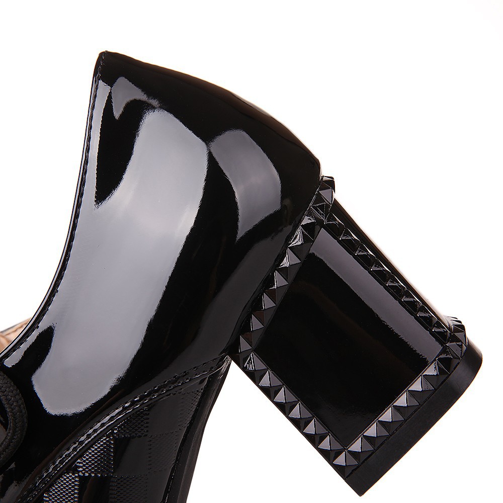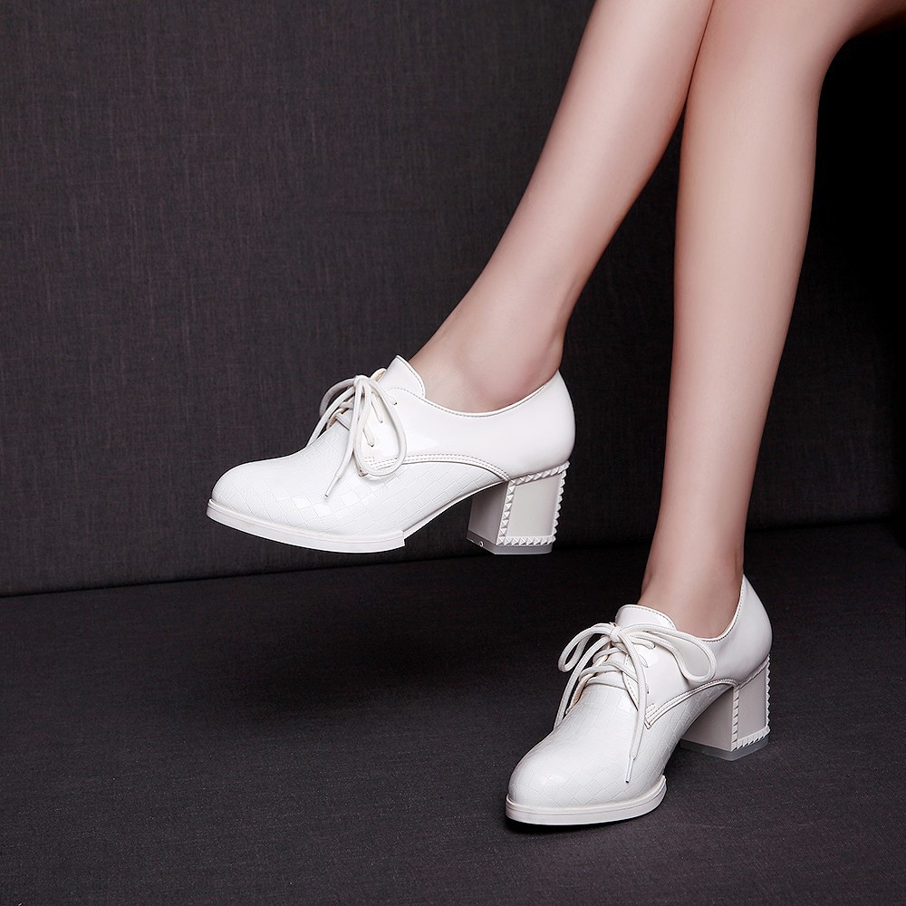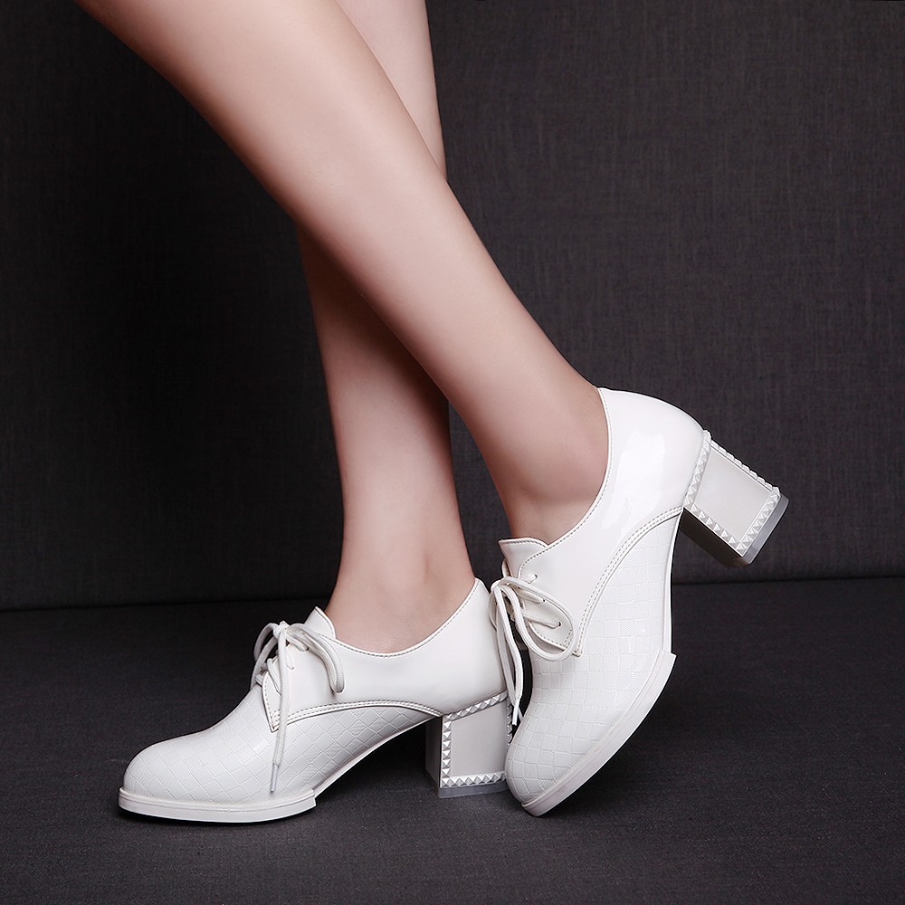 Microfiber PU leather black white Women wedding Pumps,New 2014 Autumn ladies lace up work round Toe Square Med heels woman shoes