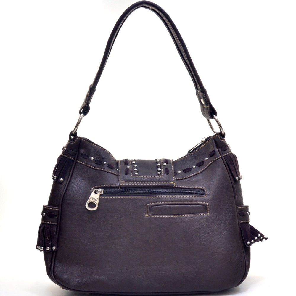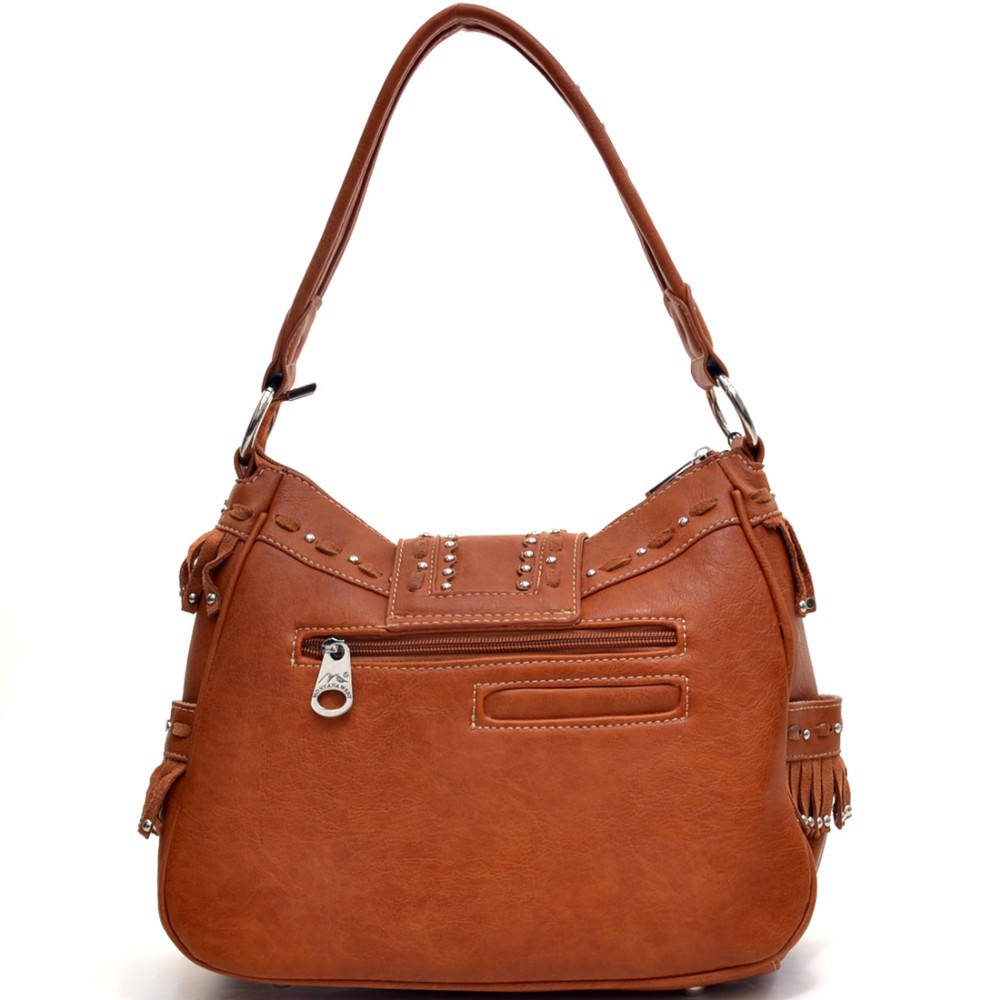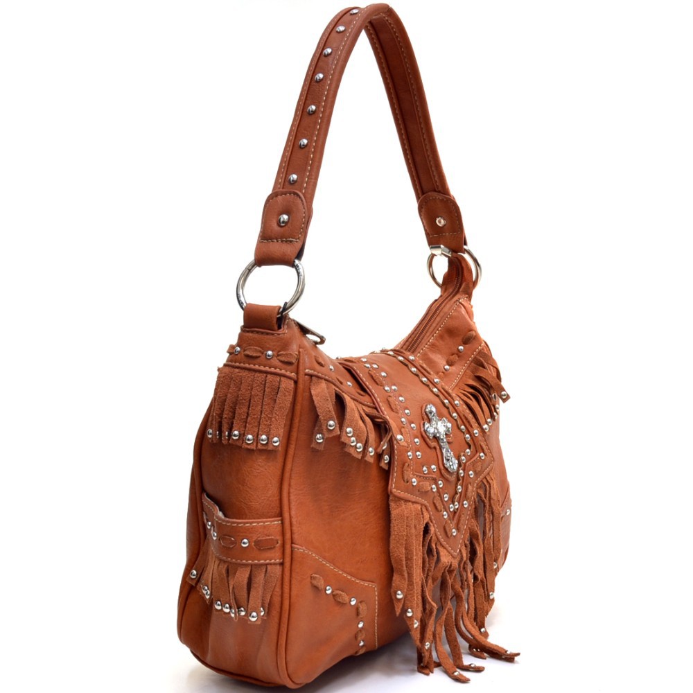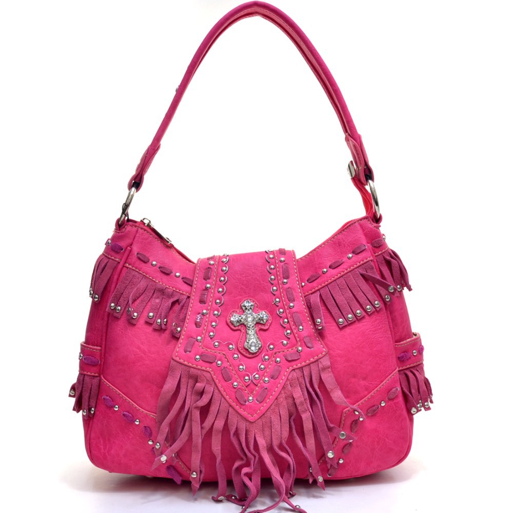 Montana West Gothic Cross Handbag with Faux Suede Studded Fringe for Women