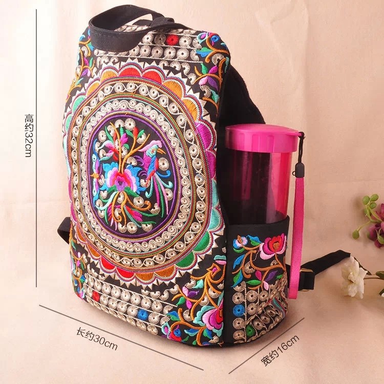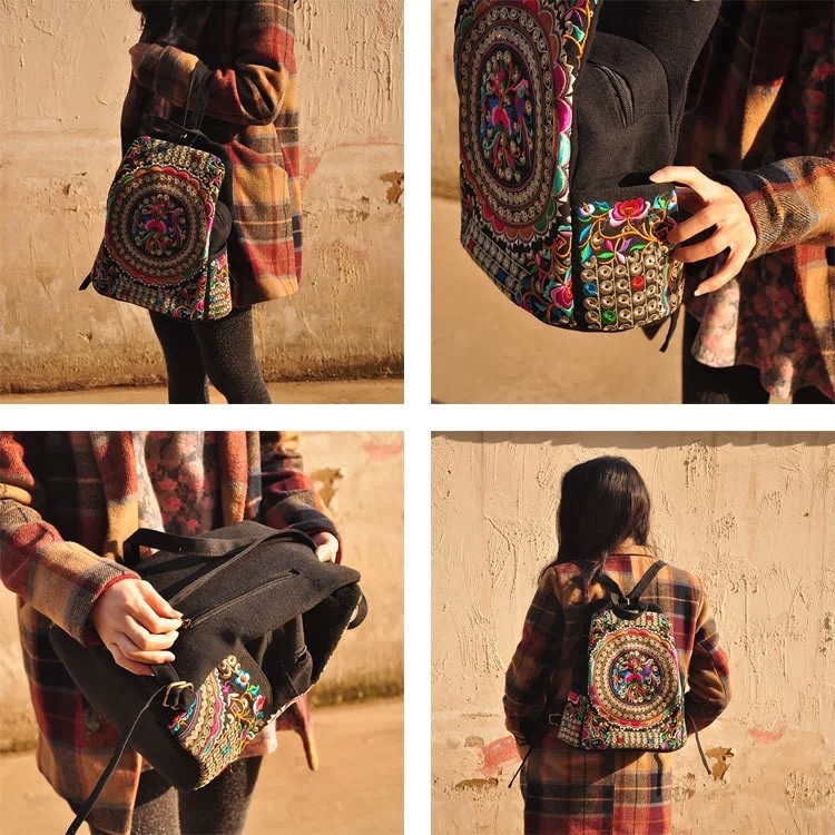 National trend canvas embroidery Ethnic backpack handmade flower Embroidered Bag Travel Bags schoolbag backpacks mochila etnica