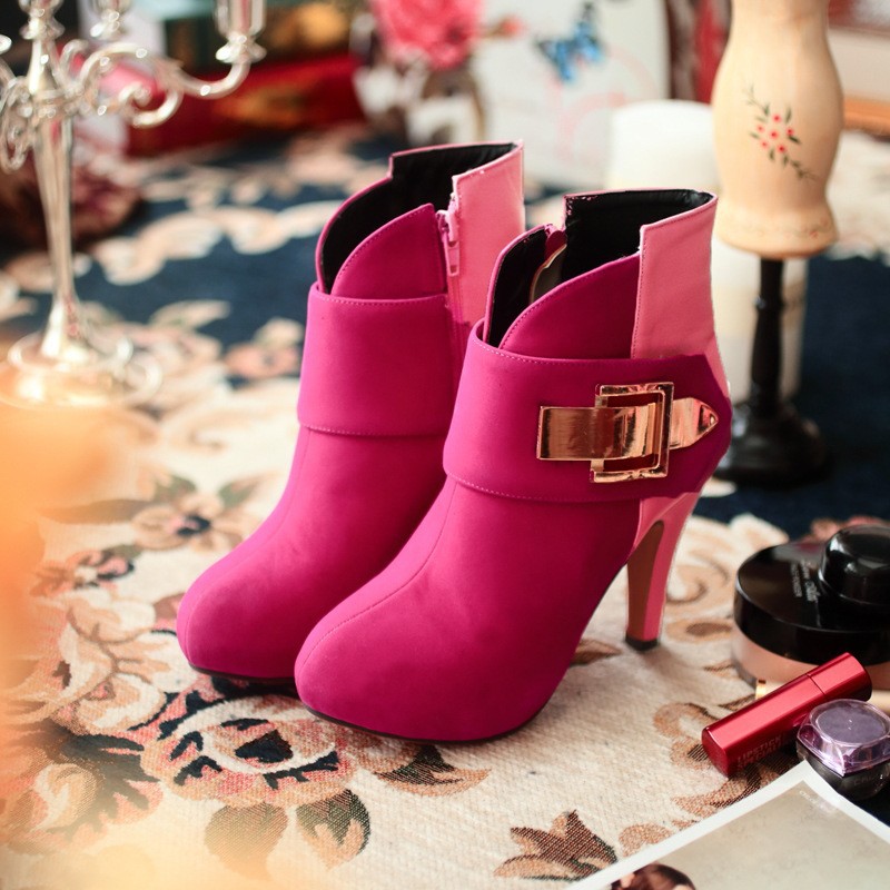 New 2014 ankle boots heels platform side zipper grind arenaceous suede shoes woman bottes chaussure femme botas femininas 35~43