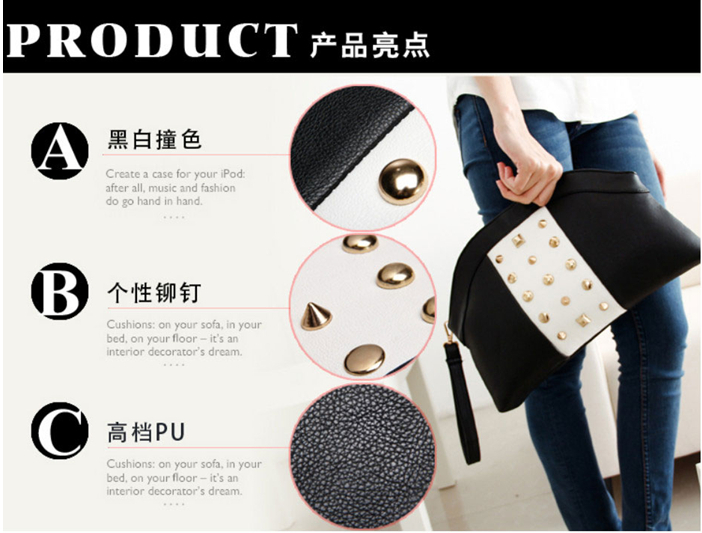 new 2014 Europe black and white matching bump color restoring ancient ways tide female bag rivet