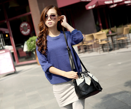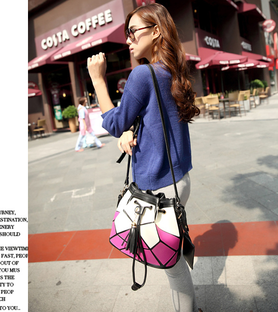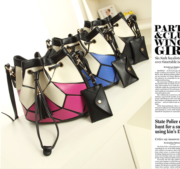 new 2014 Japanese Korean fashion handbag fashion bump bucket bag stitching one shoulder inclined across packagesr ancient free