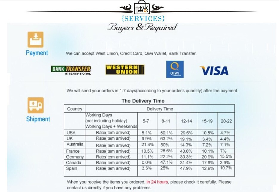 Seller ServiceOn-time DeliveryIf you do not receive your purchase within 60 days, you can ask for a full refund before order completion (when you click "Confirm Order Received" or exceed confirmation timeframe).