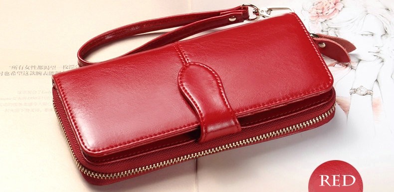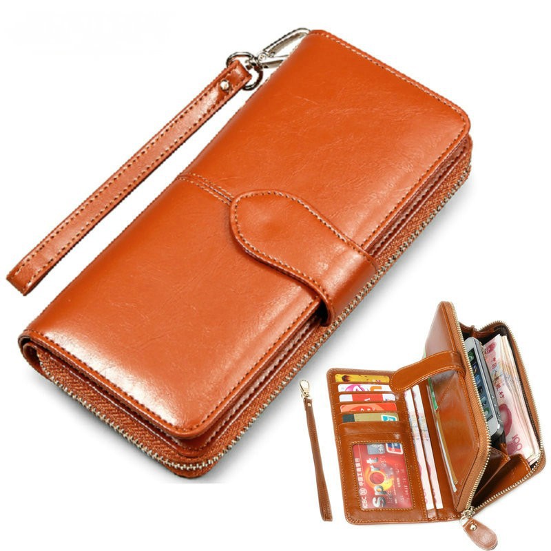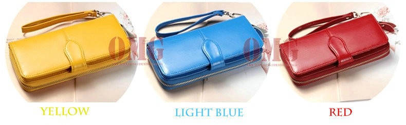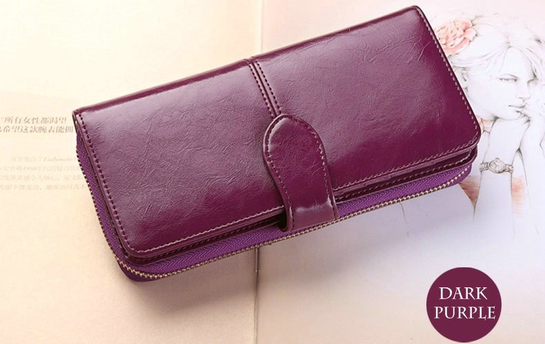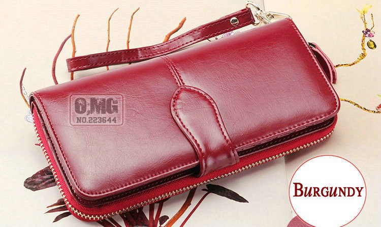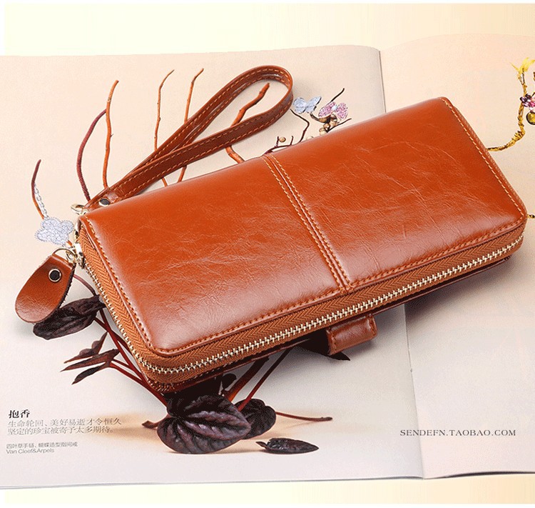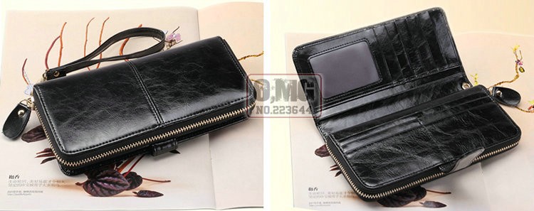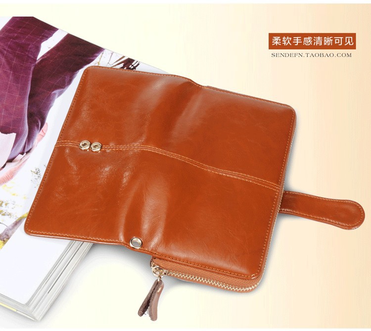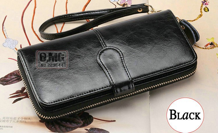 NEW 2014 Women brand long style leather fold zipper snaps oil wax leather clutch wallet phones free shipping