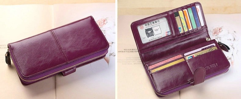 - Genuine Leather Wallet Structure: Card Slots * 11 + Money Clips + Zipper Pocket * 1 + Phone Pocket + Photo Bit * 1