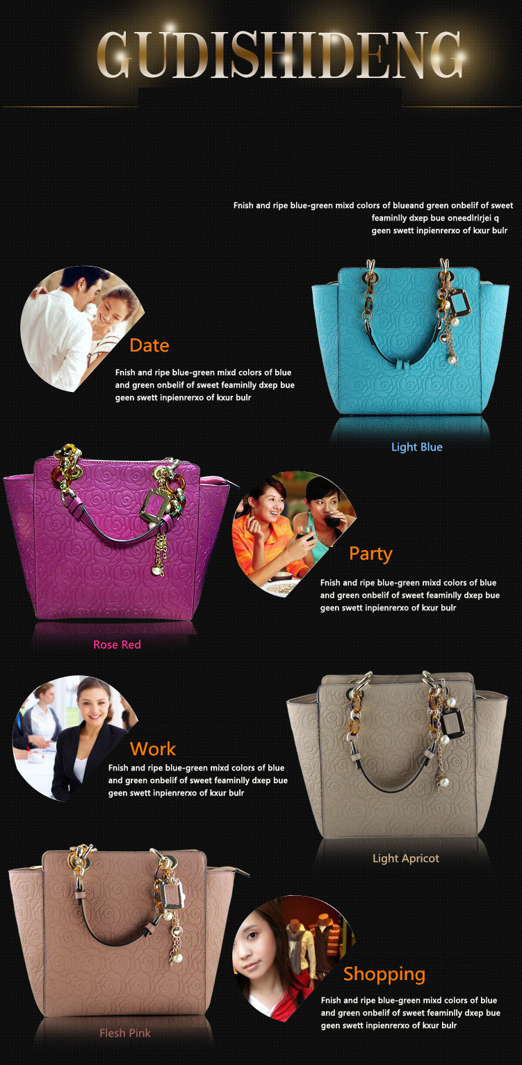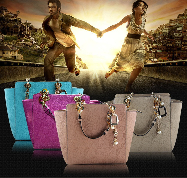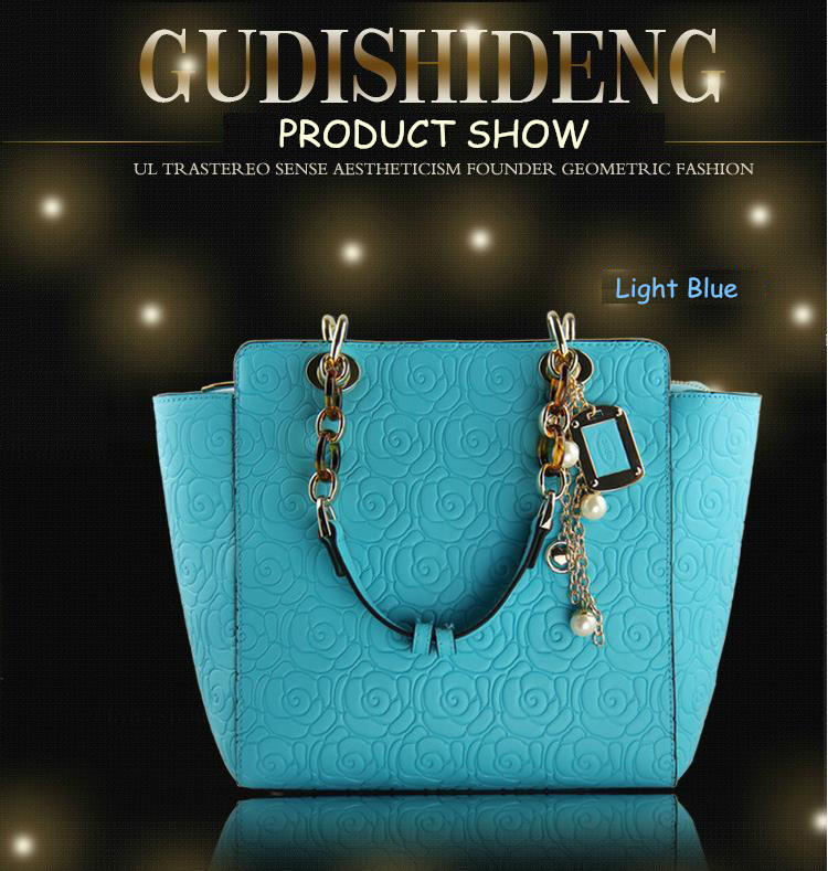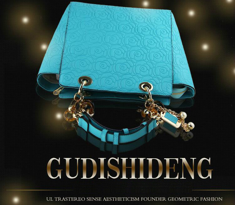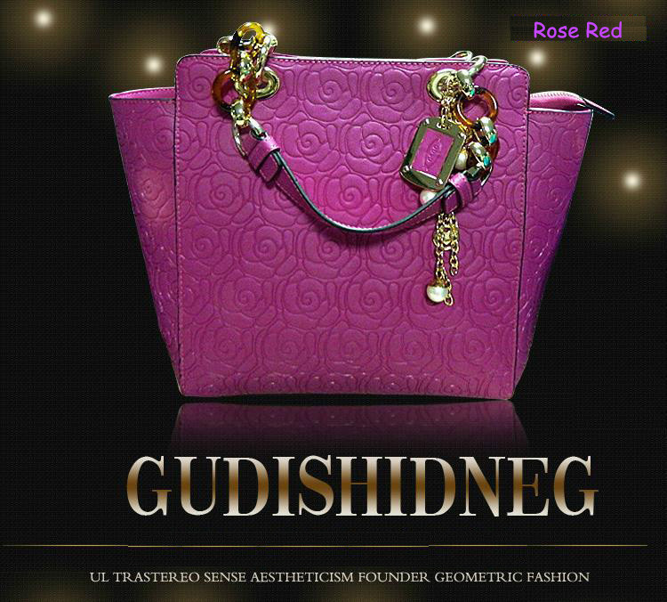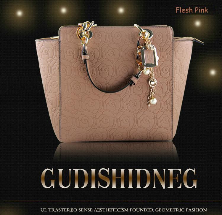 New 2015 Rose Pattern Women Handbag Fashion Women Leather Handbag Popular Shoulder Bag Genuine Leahter Tote