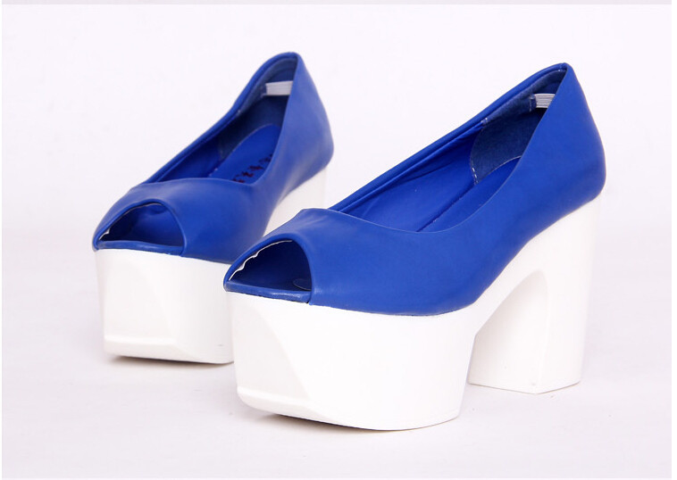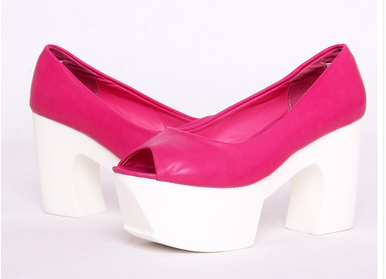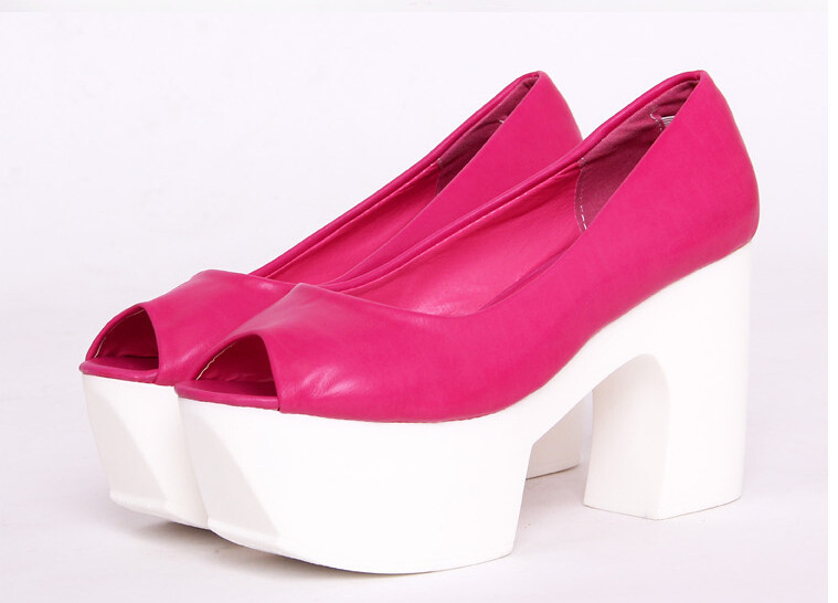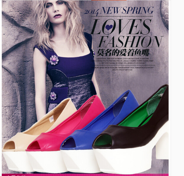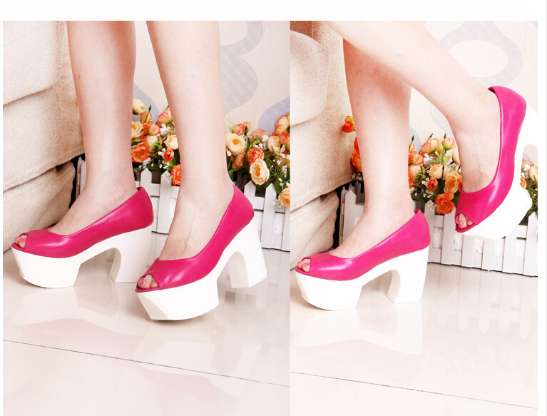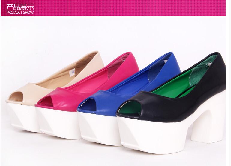 New 2014 Summer Women’s Pumps Sandals Thick Soles Waterproof Shoes Fish Head Sexy Candy colors Women Pumps Free Shipping