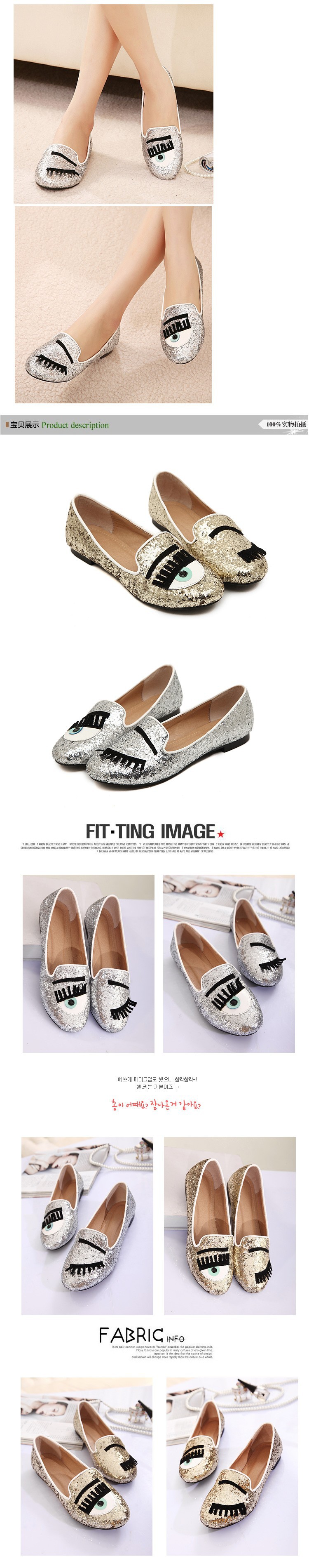New 2014 Woman Round Flat Shoes Sequined Eyelashes Blink Woman Comfortable Fashion Casual Flats