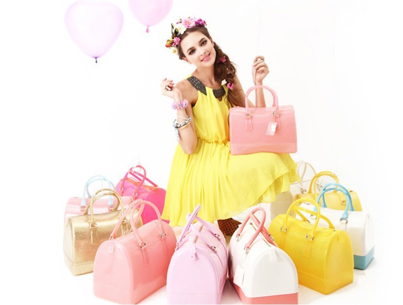New 2014 Women ladies Candy color handbags import environmetal silicone totes crystal bags free shipping