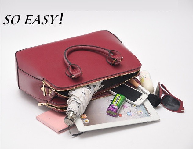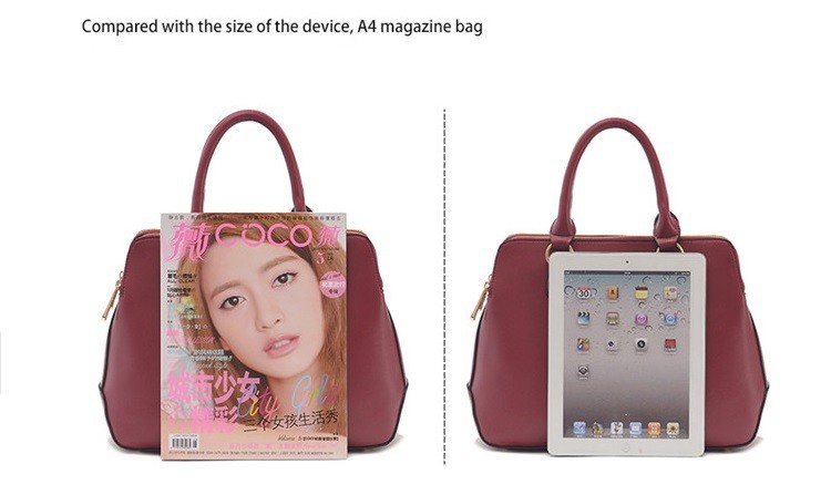 Color for bag:Red,Black Packing Weight:700g Material:High Quality PU Detailed Size for bags:34cm(Width)*25cm(Height)*12cm(Thickness) Open Method:Double Zipper Best Match:Compliments any style dress and shoes in matching color Volume:Can hold ipad,iphone,wallet,card,etc. Note 1: 1inch=2.54cm;1cm=0.39inch Note 2: Colors on your computer monitor may differ slightly from actual product colors depending on you monitor setting.