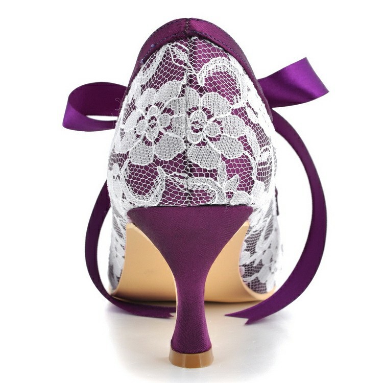 New Color Ivory Lace Purple Satin A3039 Elegant Round Toe Mary Janes Ribbon 3″ Stiletto Heel Women Evening Party Shoes