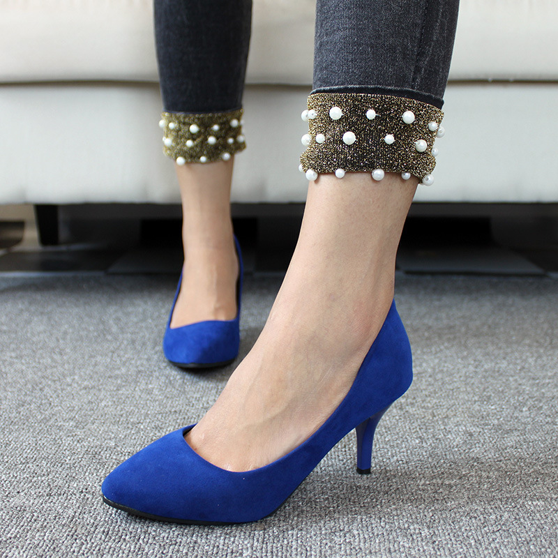 2014 new wave of Korean women with thin pointed shoes shallow mouth nightclubs nude color heels lace shoes tradeUS$ 29.99/piece |