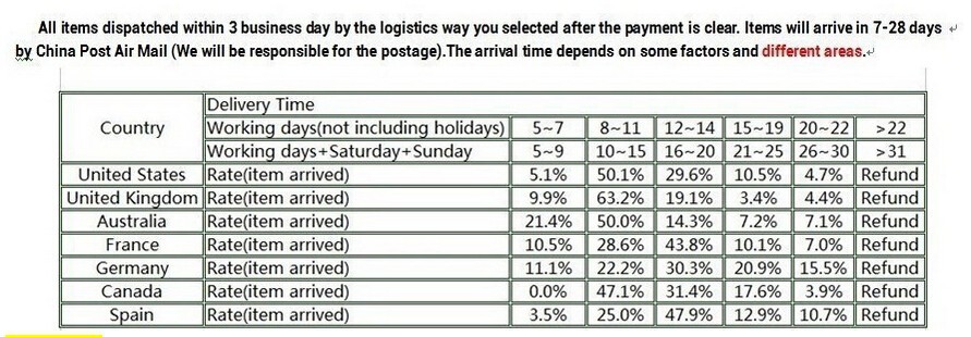 7) Delivery Time: 30—60 DAYS VIA POST AIR MAIL SERVICE