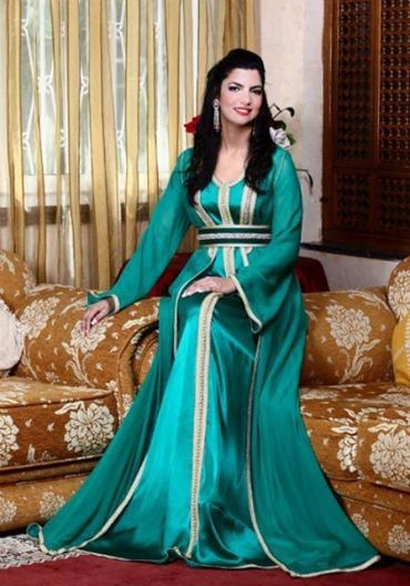 New Fashion 2014 Dubai Abaya Jalabiya Kaftans Fantasia Musilim Embroidery Beaded Satin Blue Evening Dress Long Blue