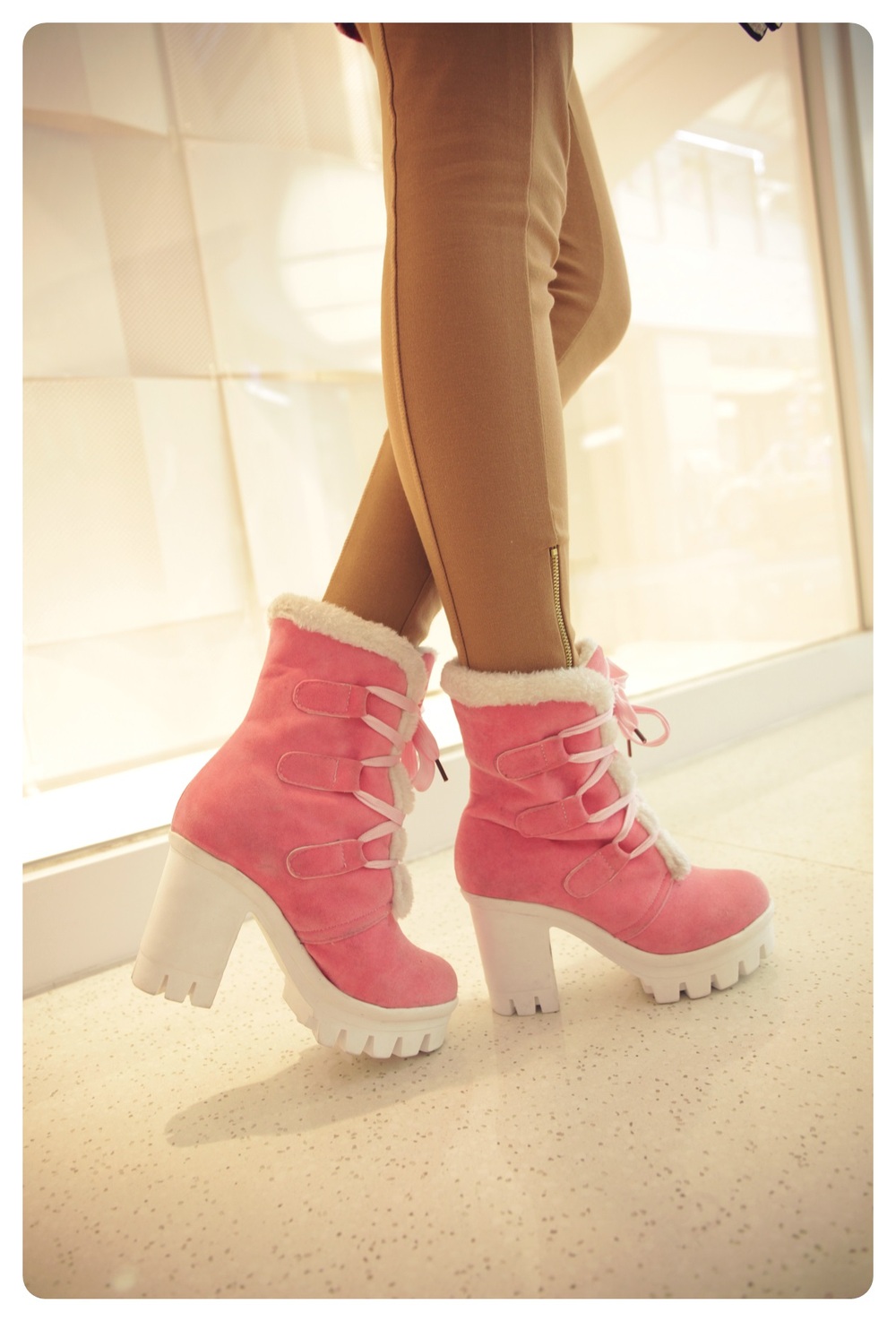New Fashion 2014 Women’s Lace Up Ankle Snow Boots Shoes Fashion Thick Platform High Heels Martin Boots Big Size 34-43