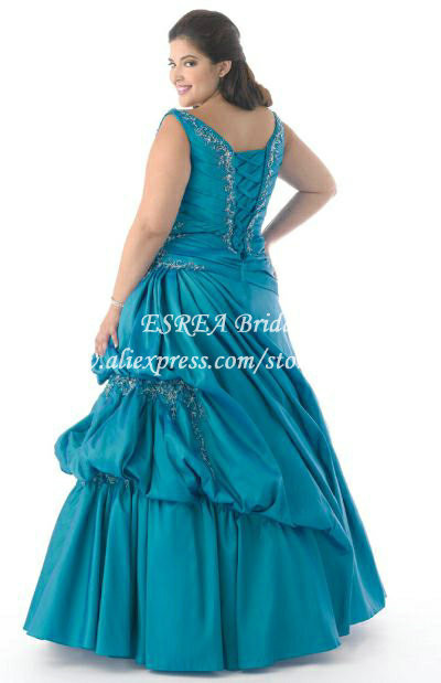 New Fashion Appliques Straps Ruched Satin Green Plus Size Prom Dress Ball Gown HM307 Lace Up Back