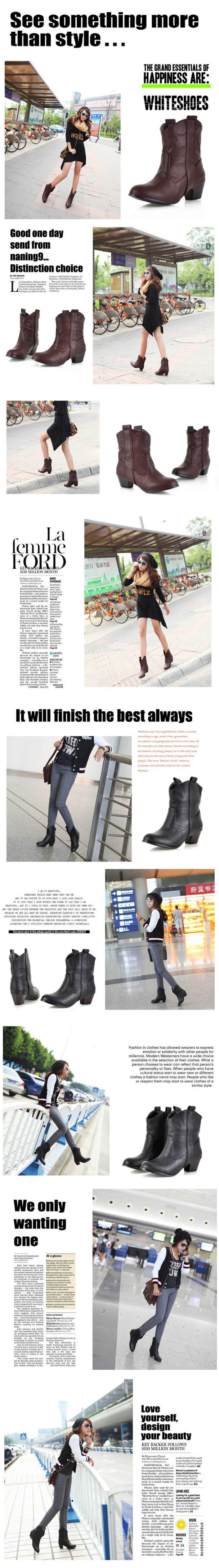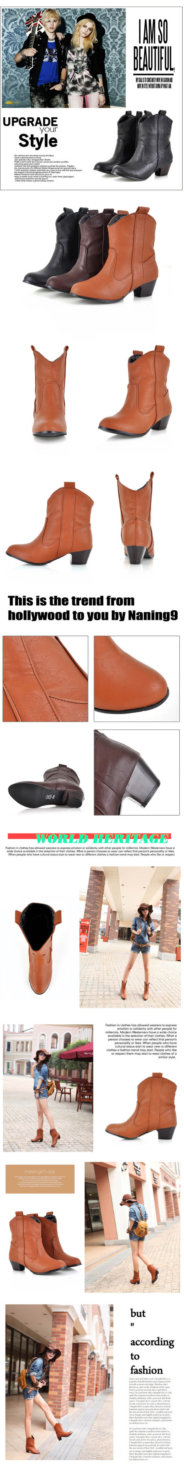 New Fashion Winter Cowboy Style Women Retro Thick With PU Leather Ankle Boots Free Shipping