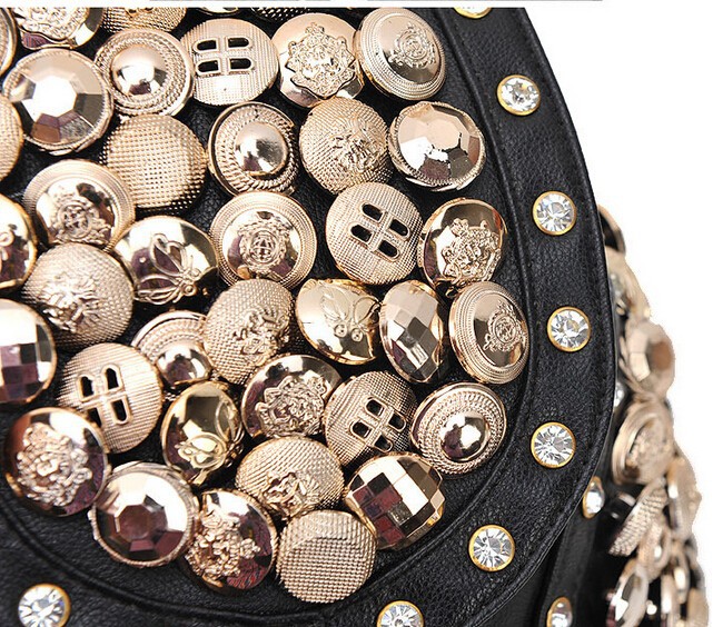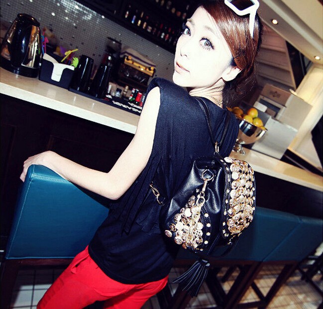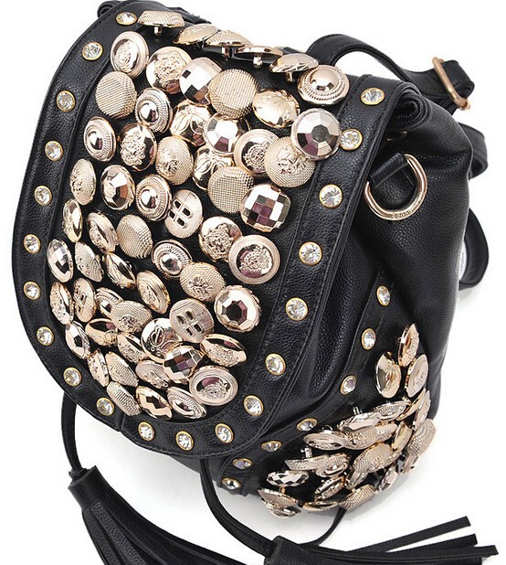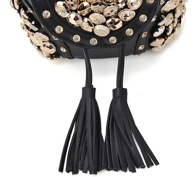 New Fashion Women PU Handbag Vintage Rhinestone Chain Bag Lady Bucket Shoulder Bag Casual Tassel Messenger Bag Free Shipping