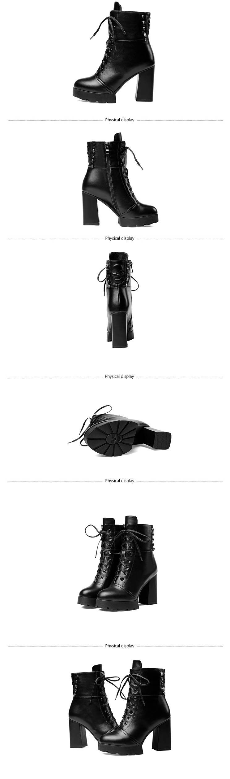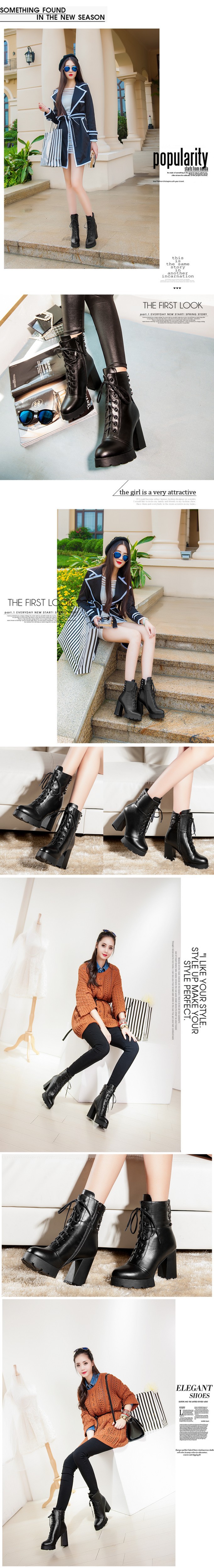 New Fashion Womens Chunky Block Platform Pumps Lace Up Leather Ankle Boots Pumps