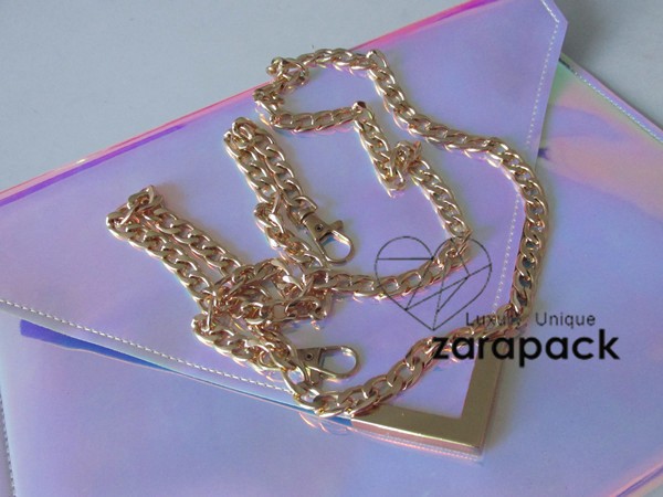Featured by customized Holographic rainbow leather, button closure, detachable chain strap.