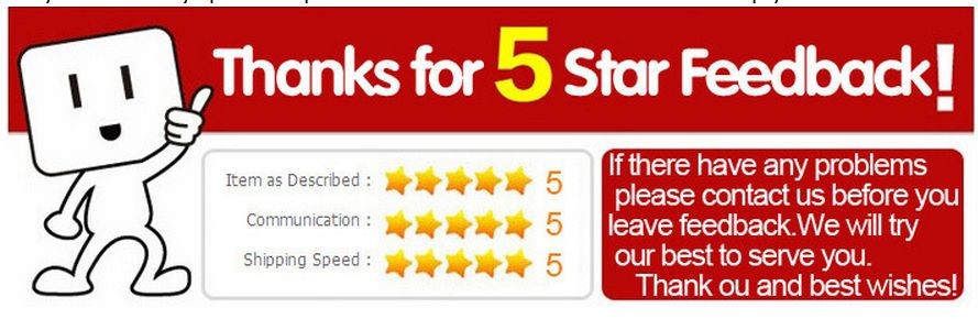 Your satisfaction and positive feedback is very important to us.Please leave positive feedback and 5 stars if you are satisfied with our items or service.If you have any problems with our items or service;please feel free to contact us first before you leave negative feedback.We will do our best to solve any problem and provide you with the best customer services.