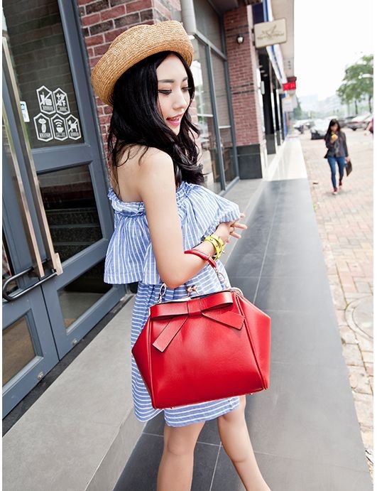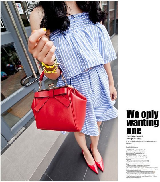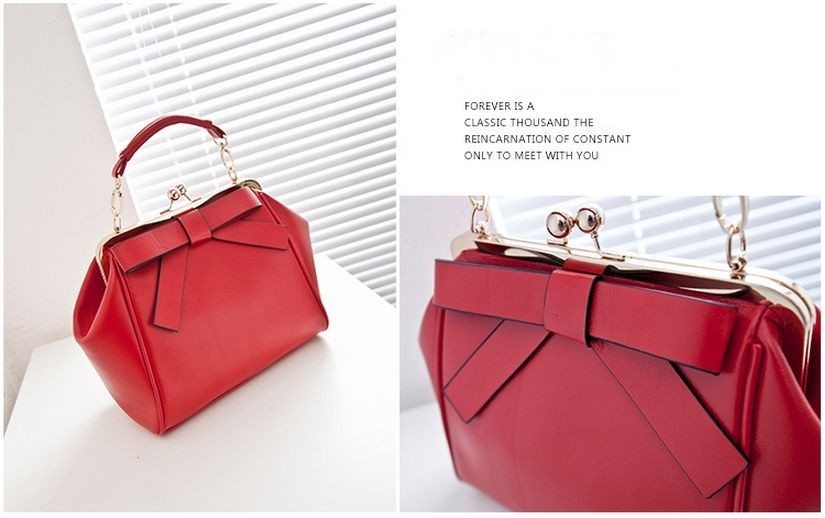 New punk Arrival portable women shoulder bag PU leather solid bow clip package messenger bag fashion vintage for women handbag