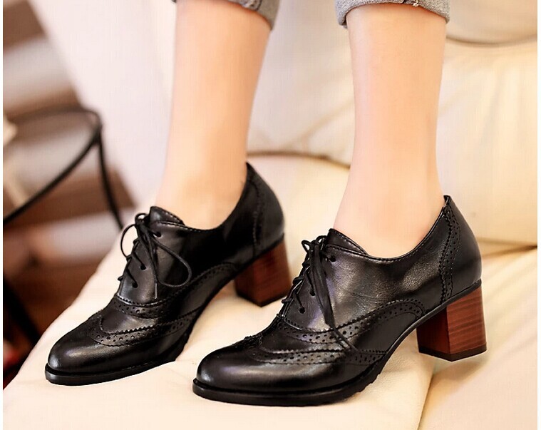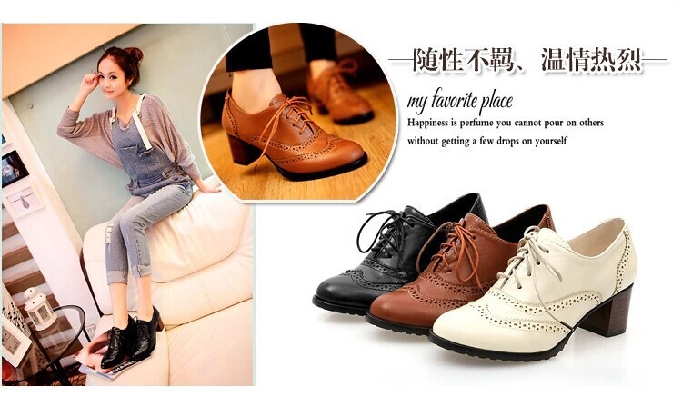 New spring carved ladies platform british Oxford shoes for women cut-outs female high heel pumps single casual working shoes