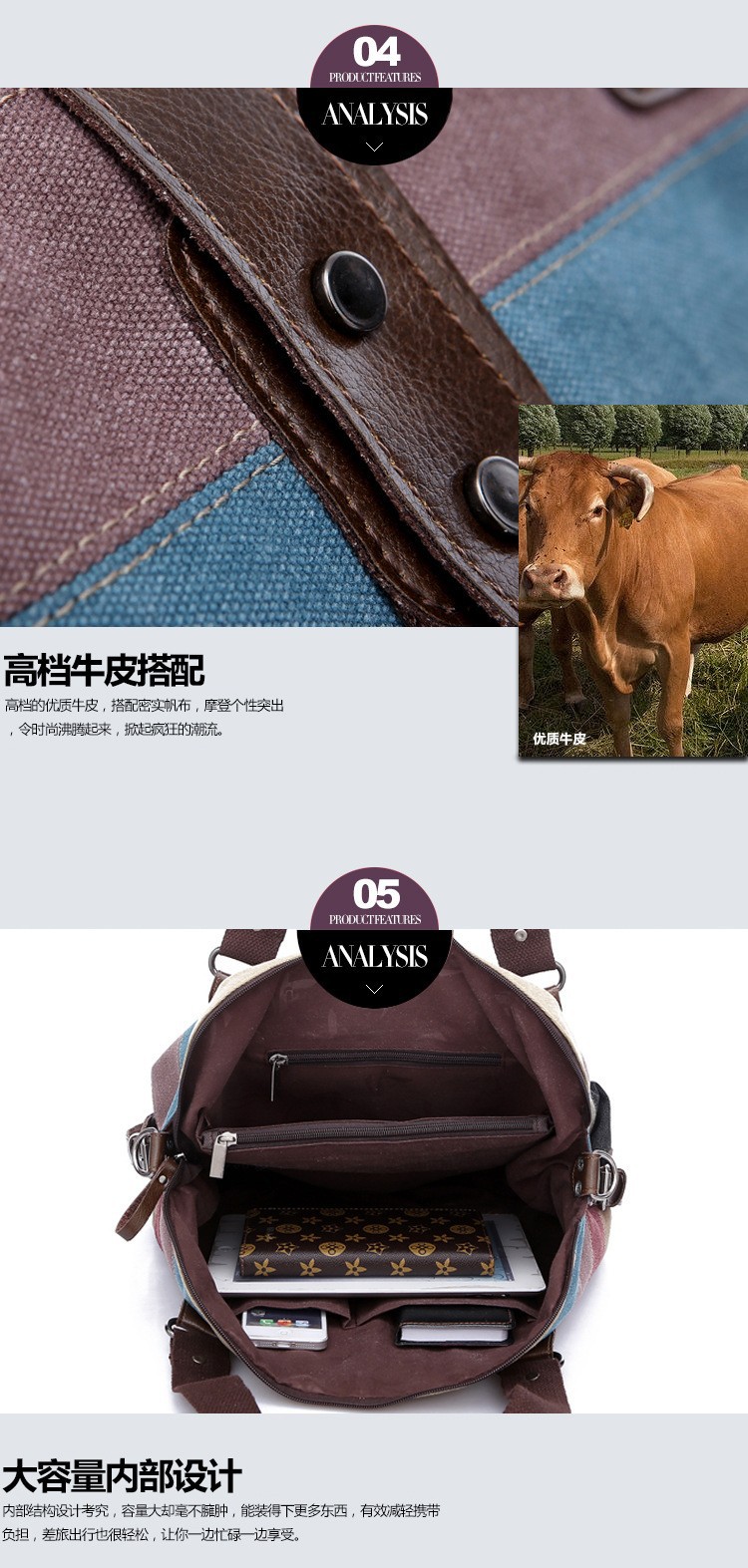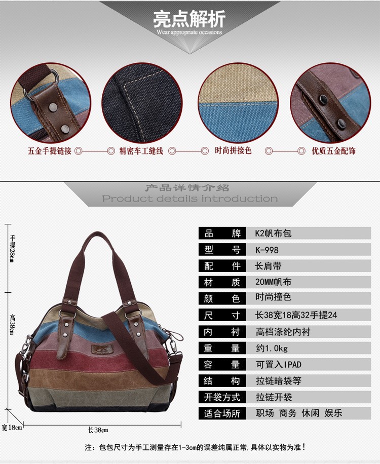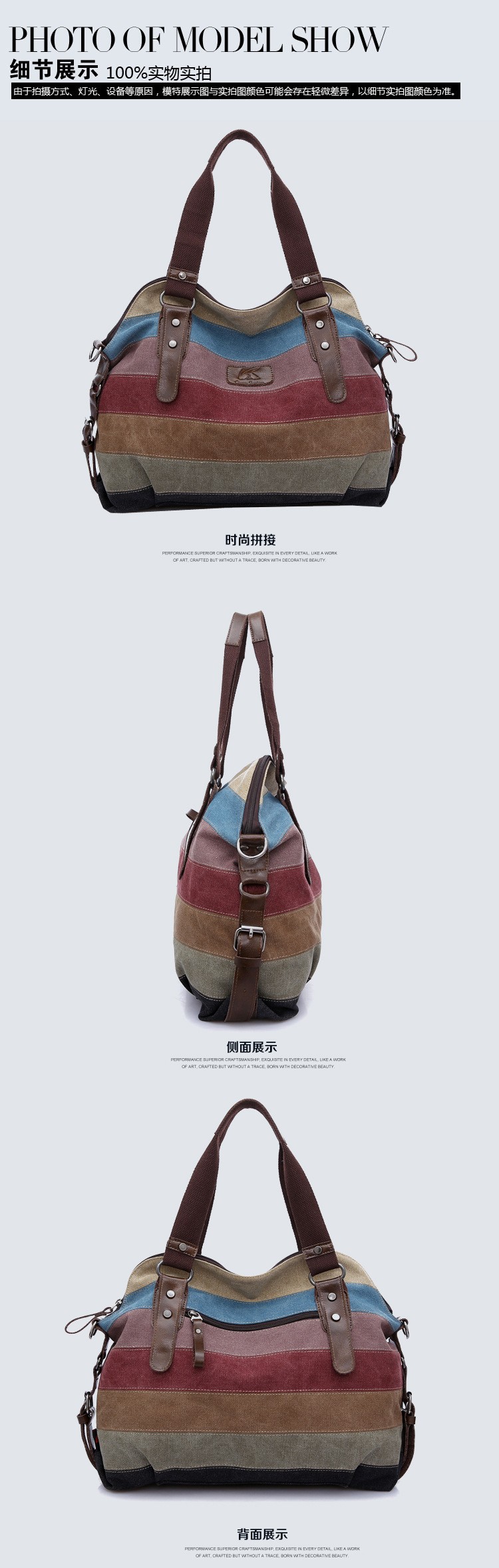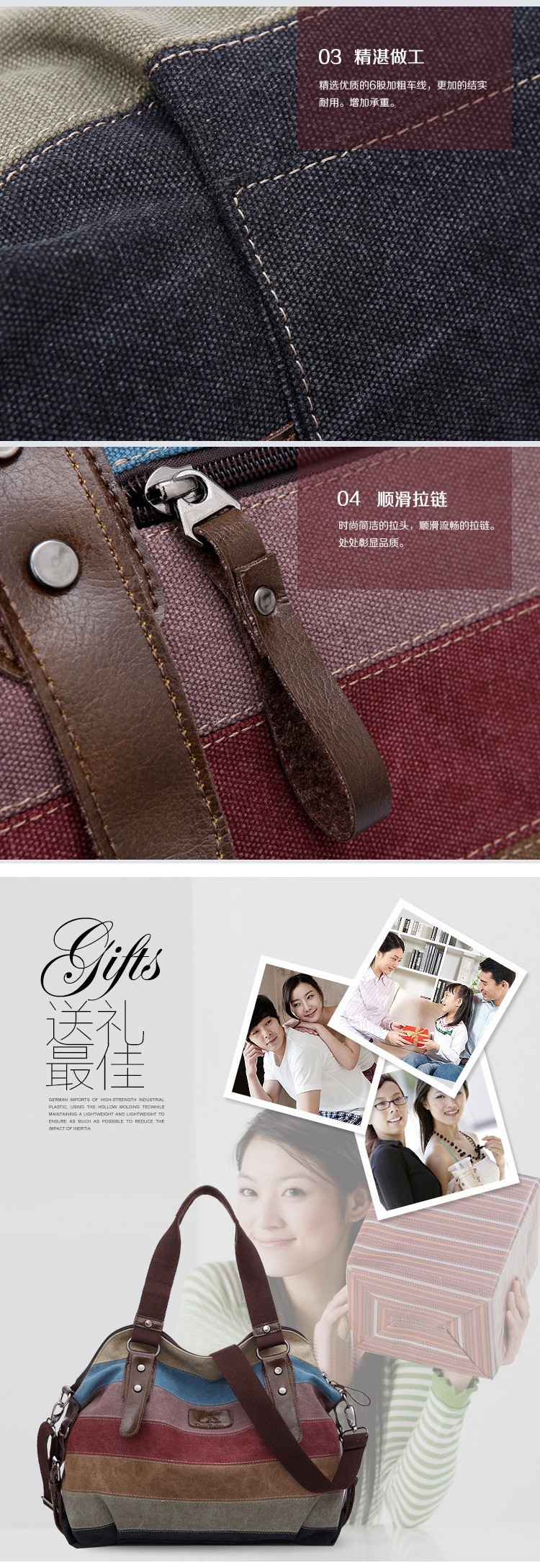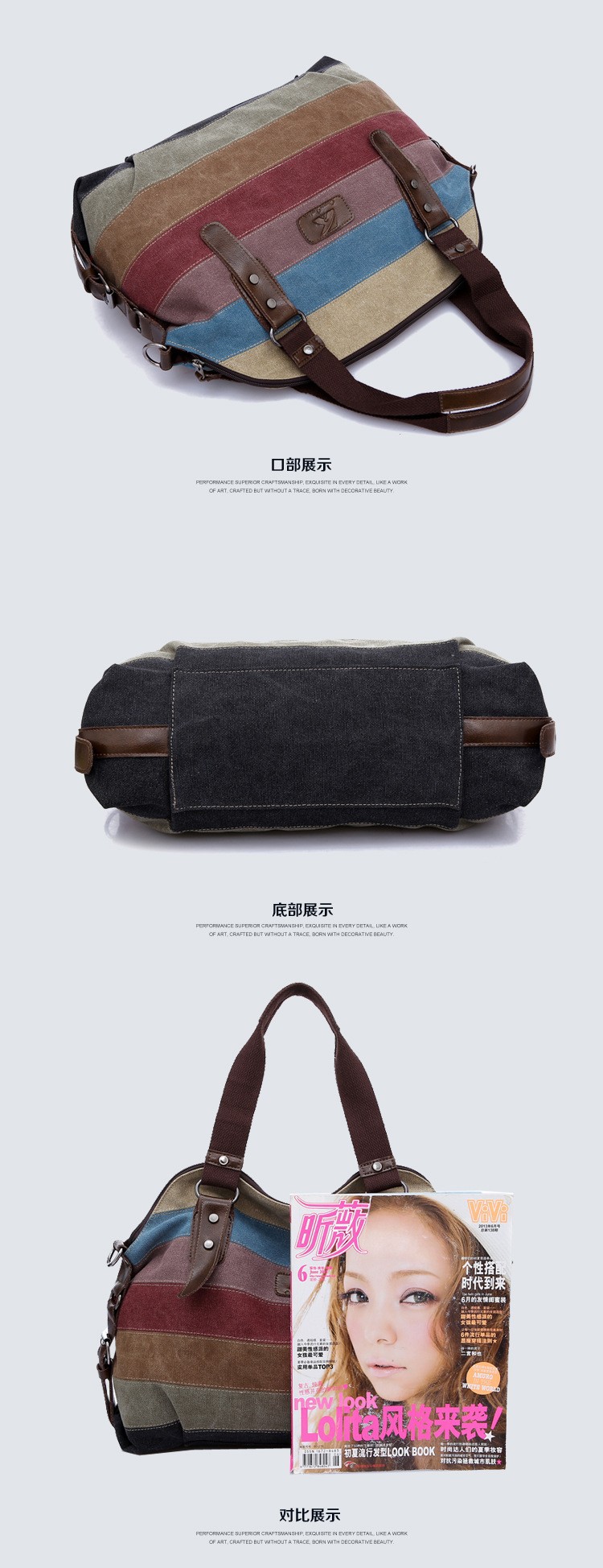 New wome canvas bag high-capacity women messenger bag hit color canvas bag stitching package shoulder bag