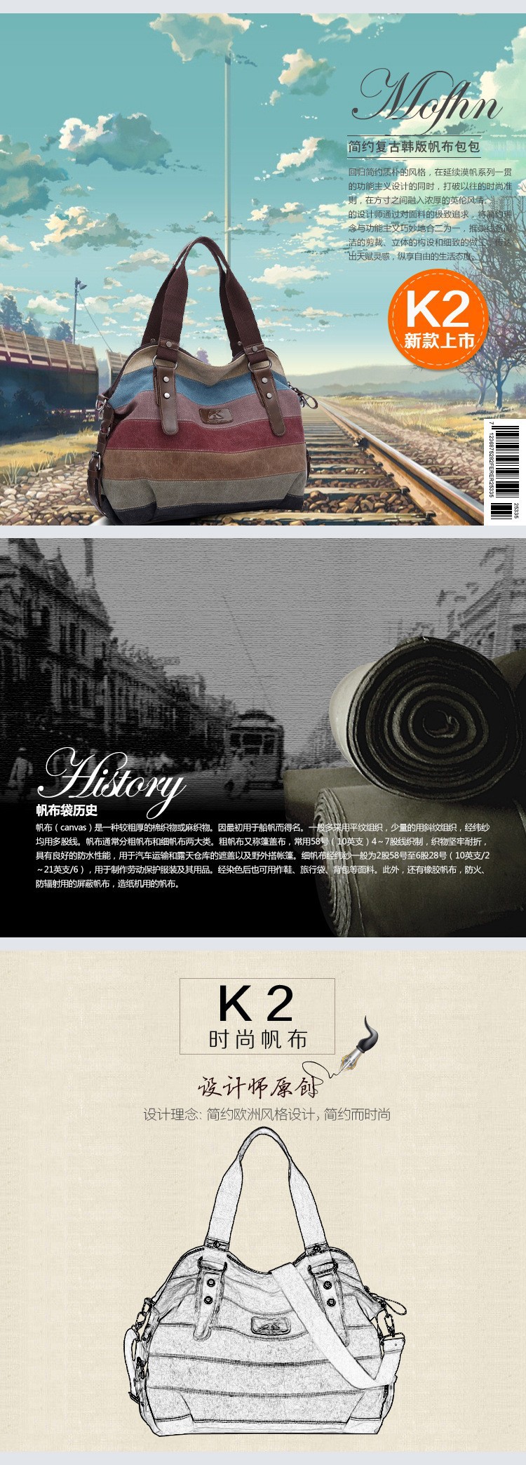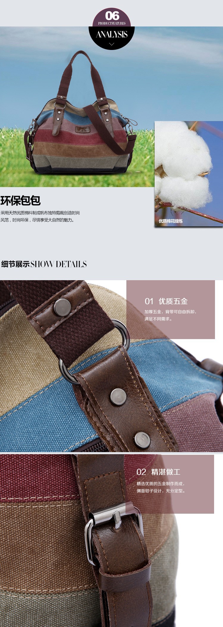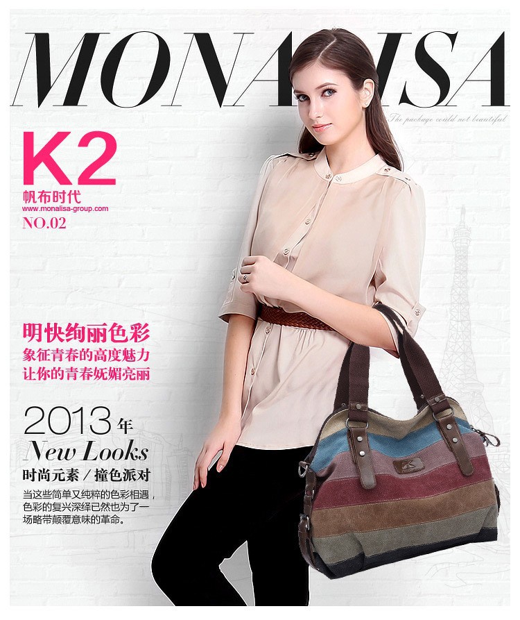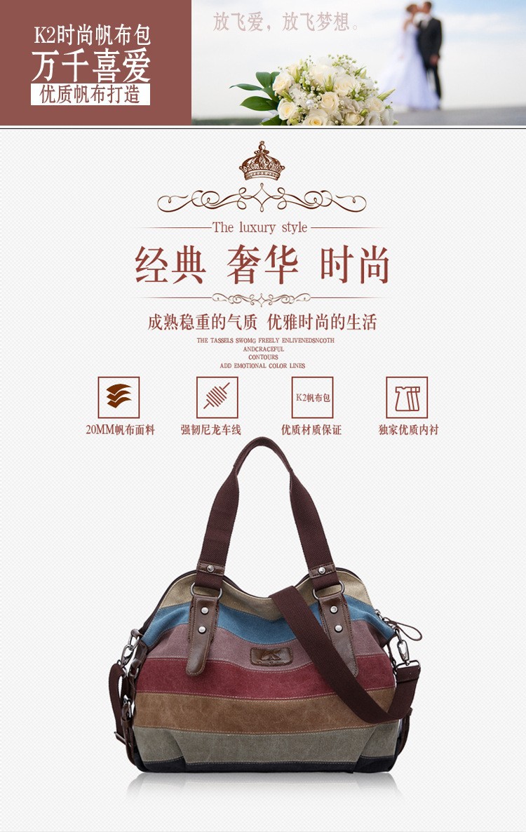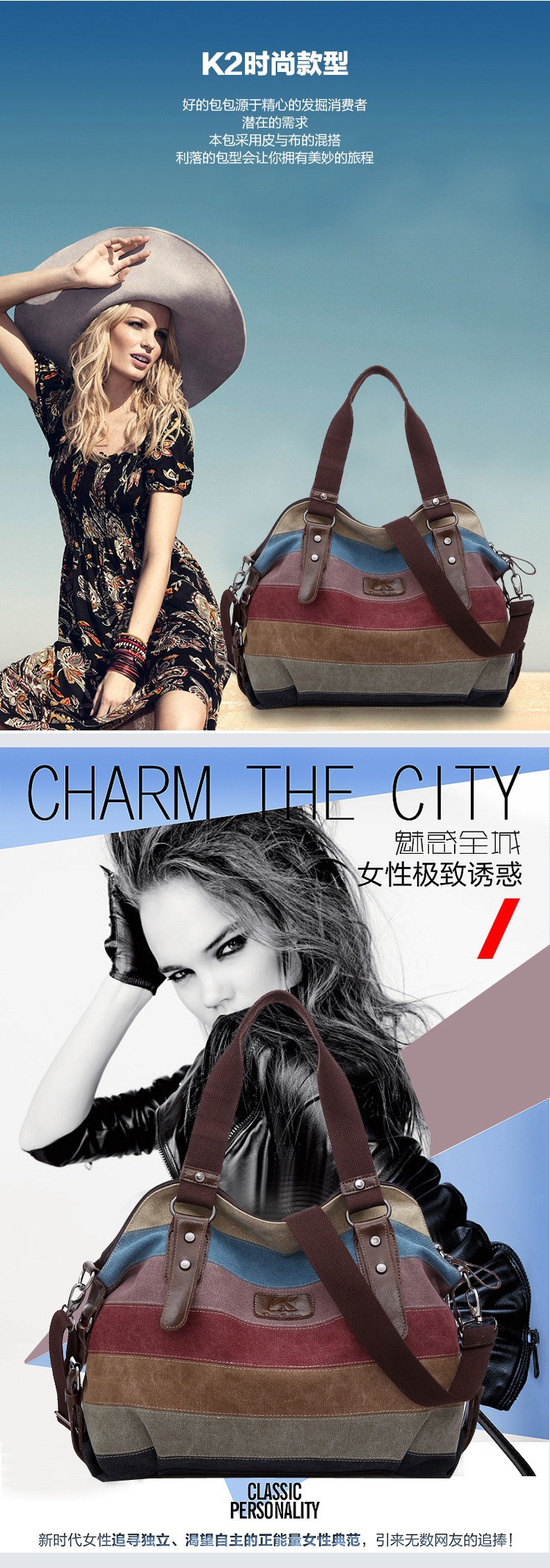 New wome canvas bag high-capacity women messenger bag hit color canvas bag stitching package shoulder bag