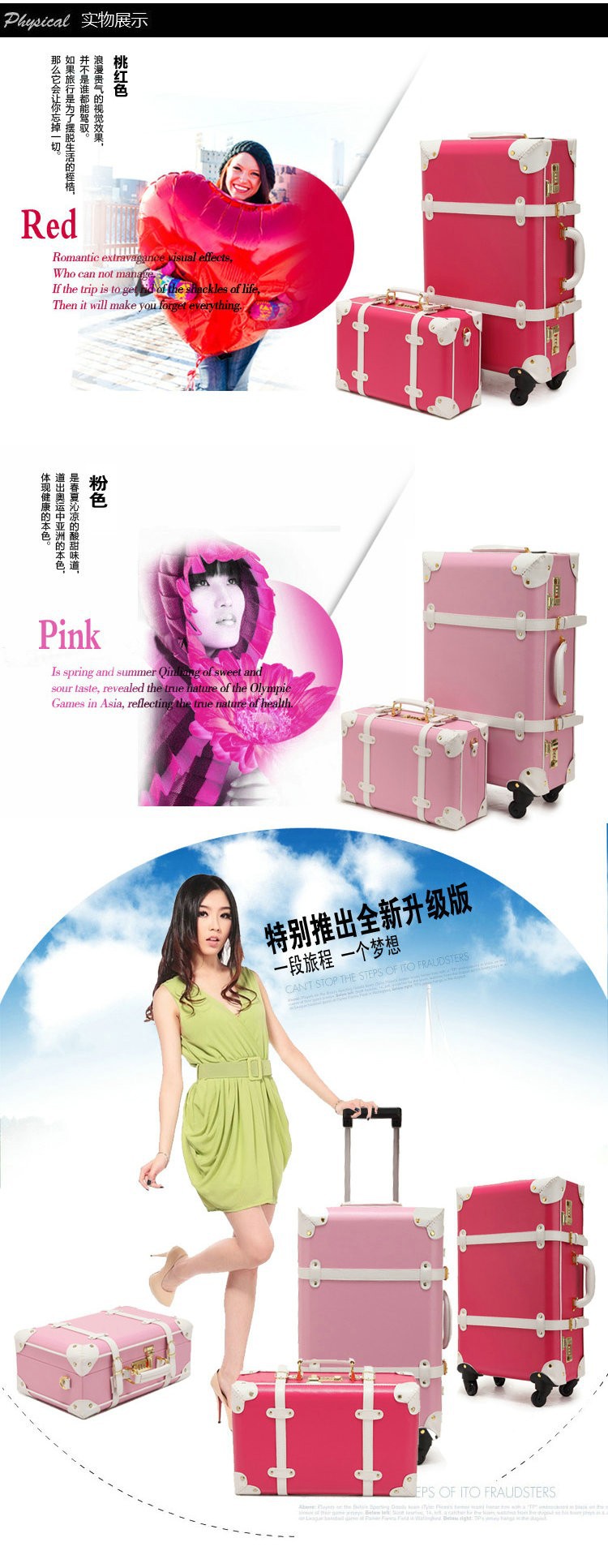 New Women Vintage Luggage Sets PU Leather Travel Suitcase Universal Wheels Trolley Luggage 22 24 inch
