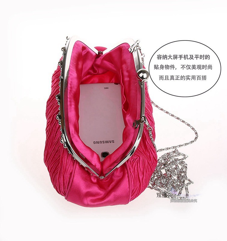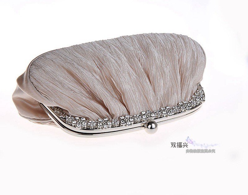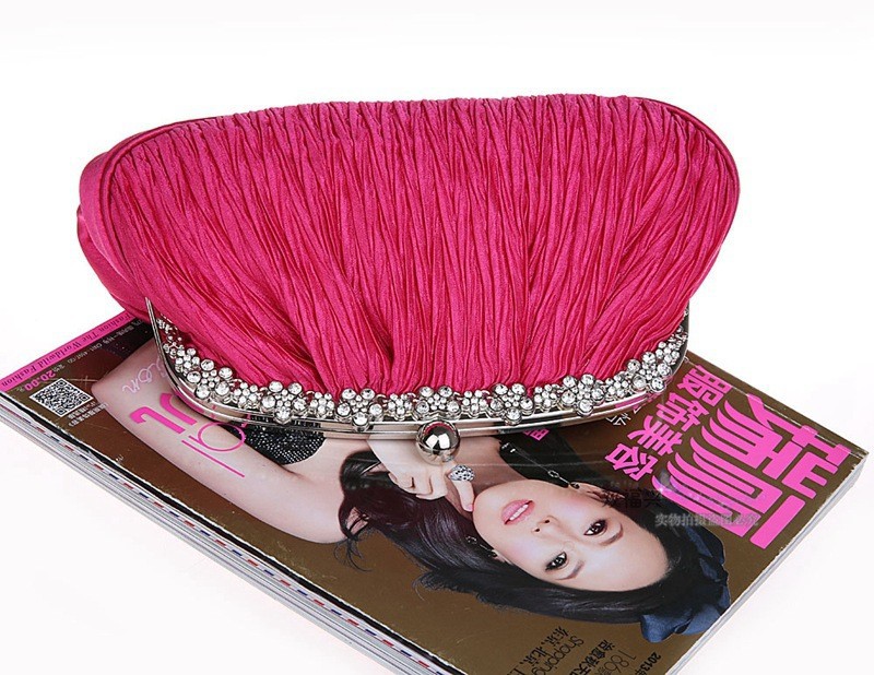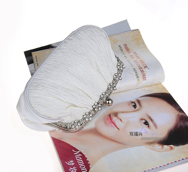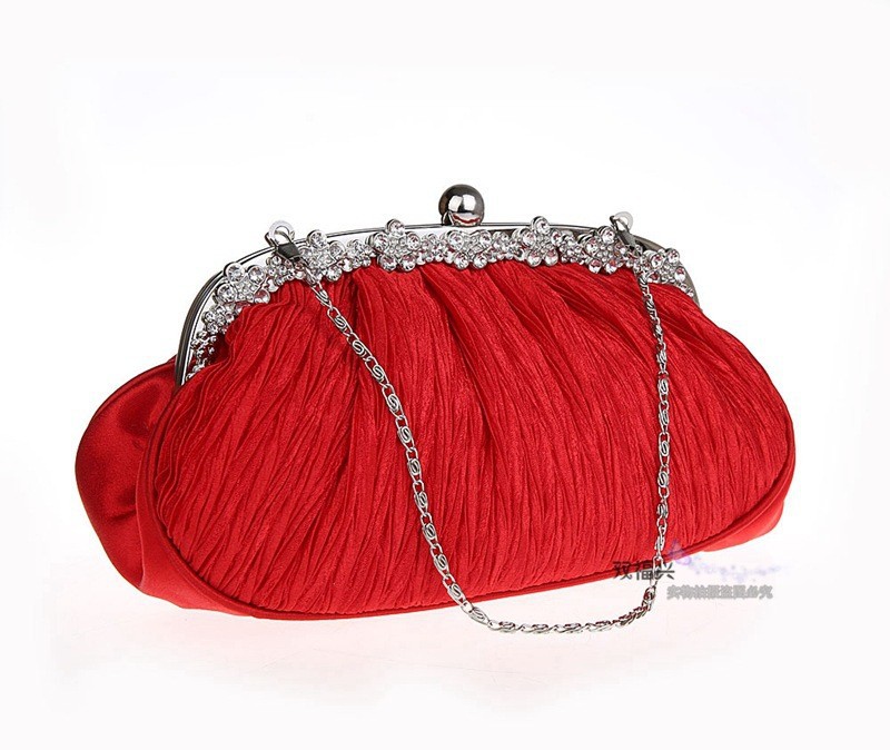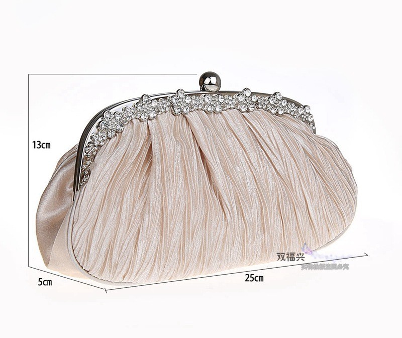 New Women s Handbags Fashion Diamond Silk Folds Clutch Wedding Party Bridal Evening Bag Chain Shoulder