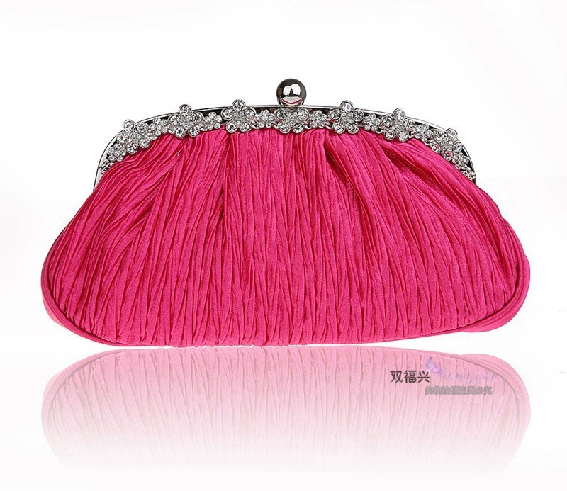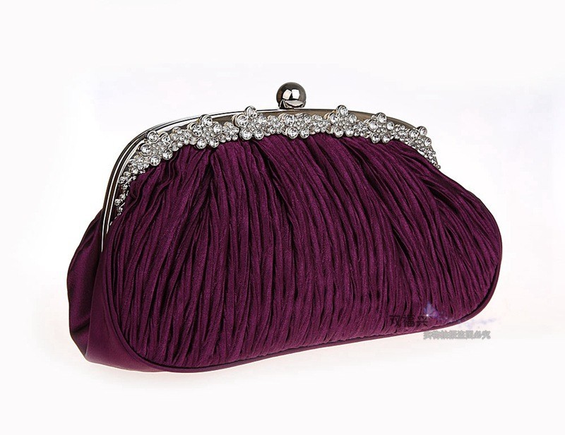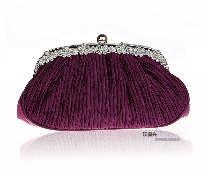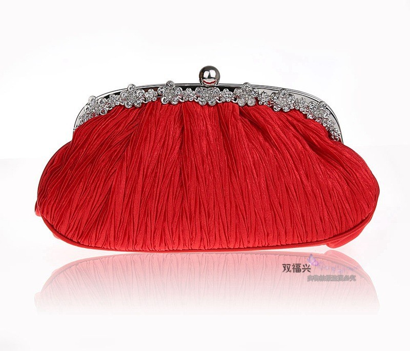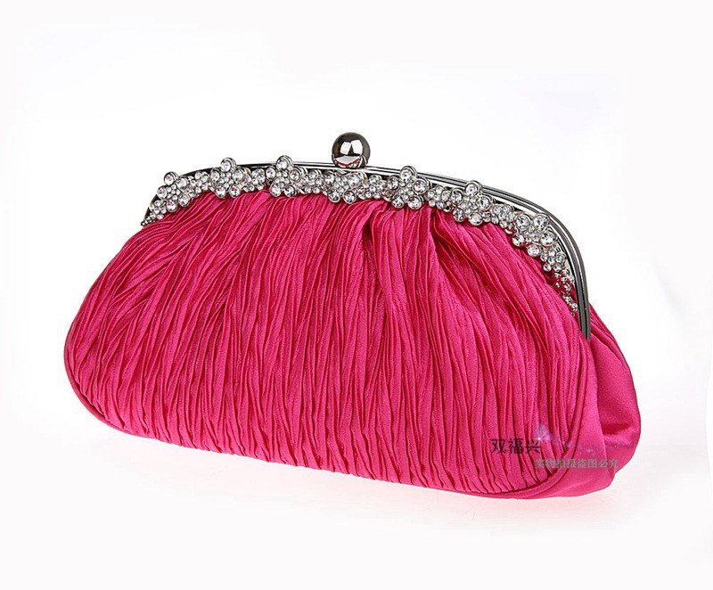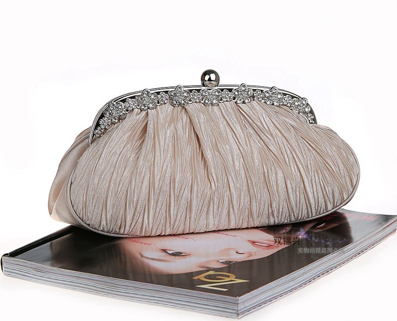 New Women s Handbags Fashion Diamond Silk Folds Clutch Wedding Party Bridal Evening Bag Chain Shoulder