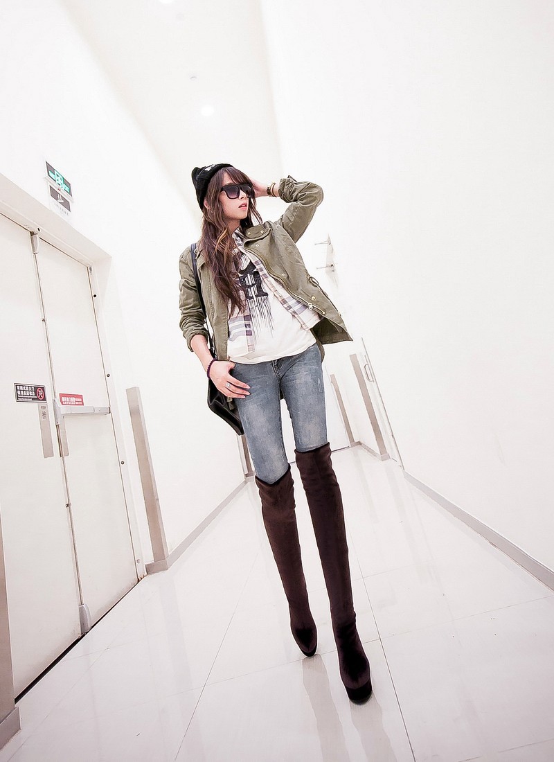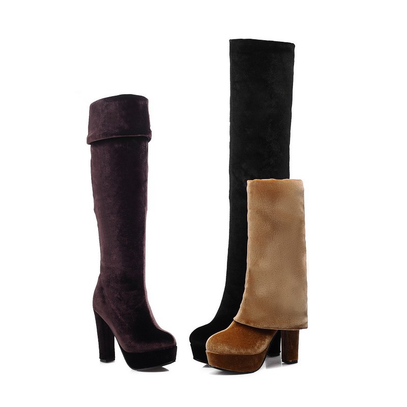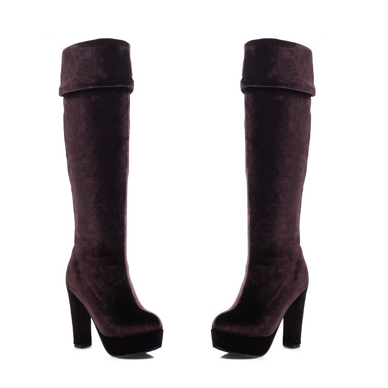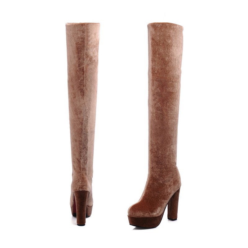 New Womens Sexy Slim Leg Thigh High Boots Platform Pumps Soft Velvet High Heels