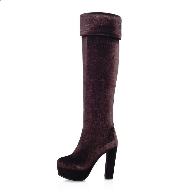 New Womens Sexy Slim Leg Thigh High Boots Platform Pumps Soft Velvet High Heels us 4 4.5 5 6 7 8 9 10 10.5 11