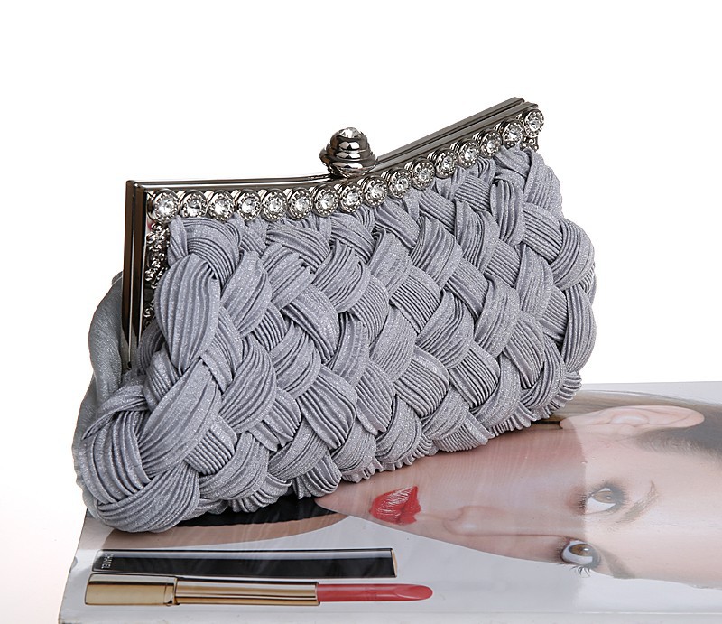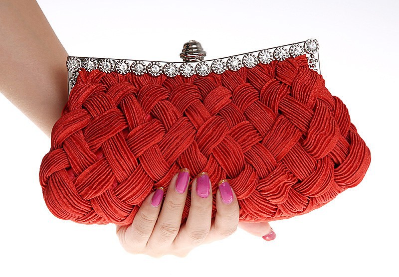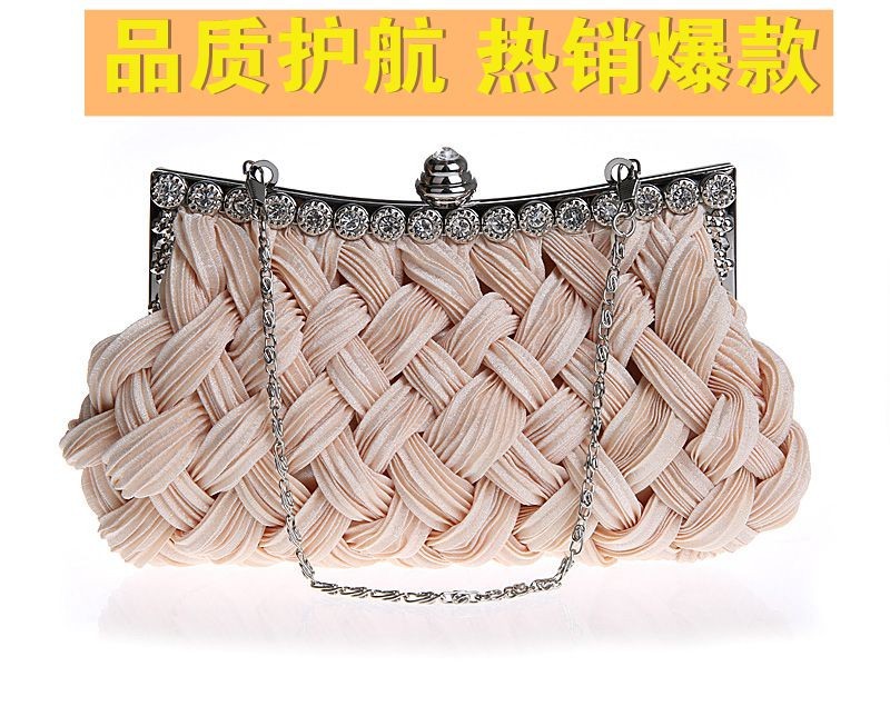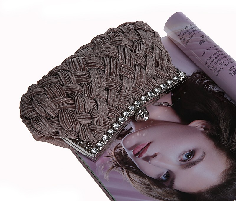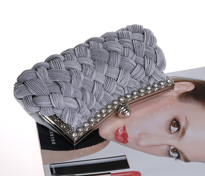 Brand New Fashion Women s Handbags Hand woven Satin Diamond Clutch Evening Dinner Bag Chain Shoulder