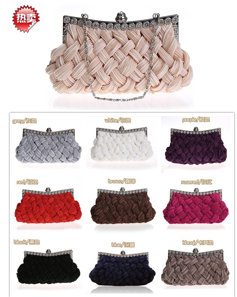 Nice Popular Silk Elegant Noble Dinner Bag, Diamond Lady Bag / Evening Bag, Luxury Handbag Best Price 8 Colors NO2012