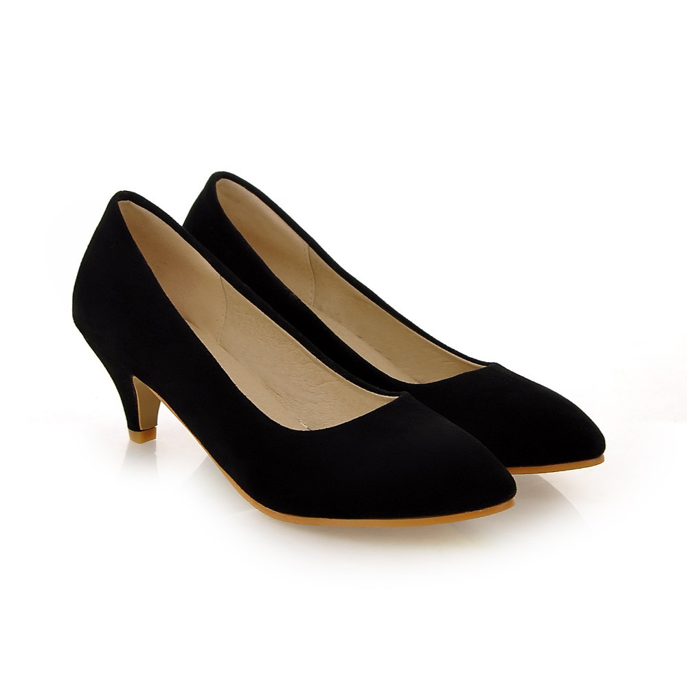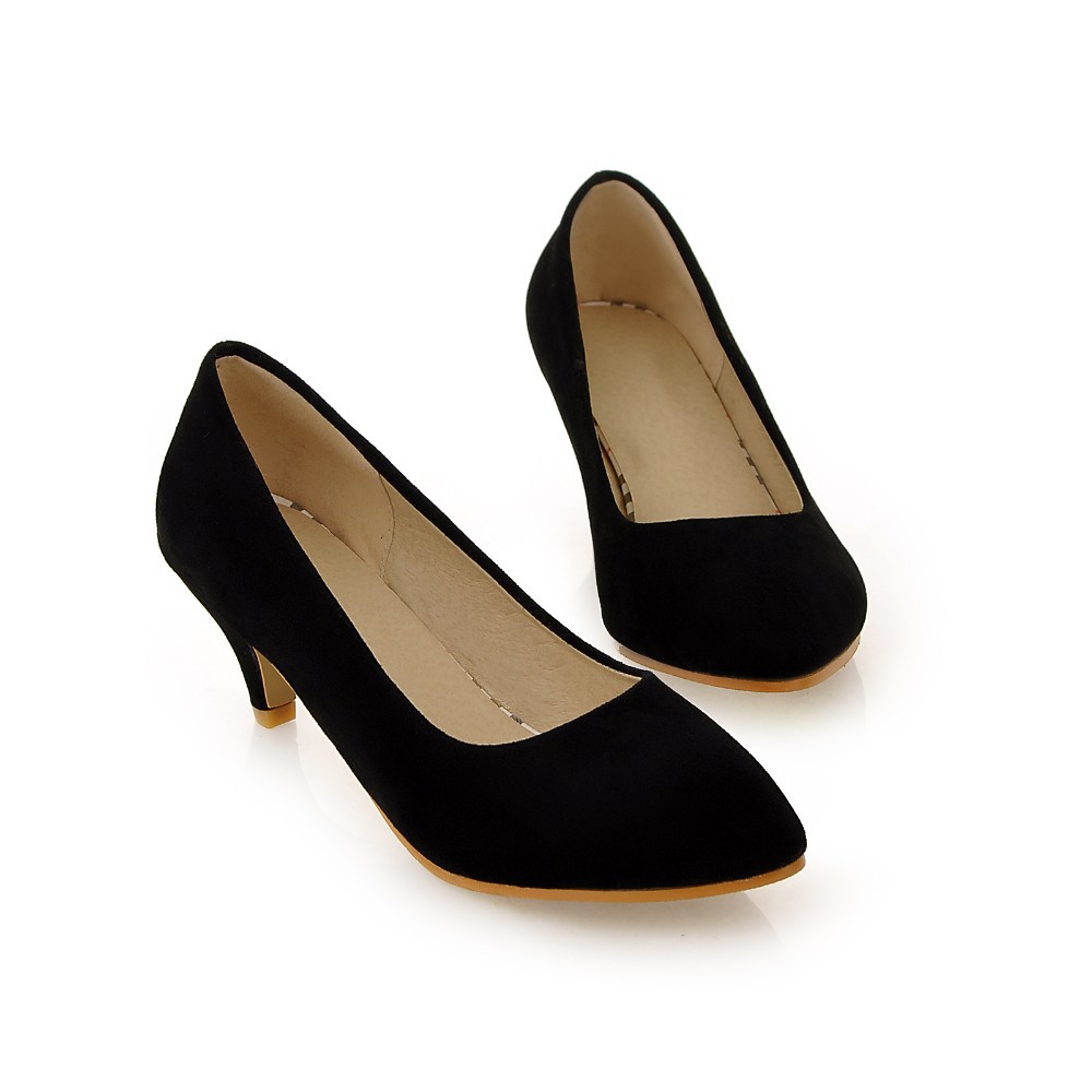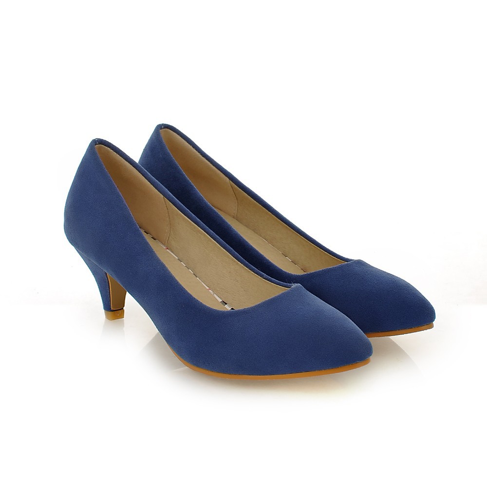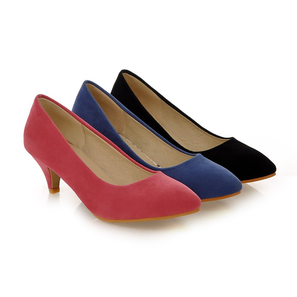Nubuck leather size 5-9.5 black red blue Women Pointed Toe Pumps,New 2014 autumn Simple Europe woman med Spool Heels party shoes