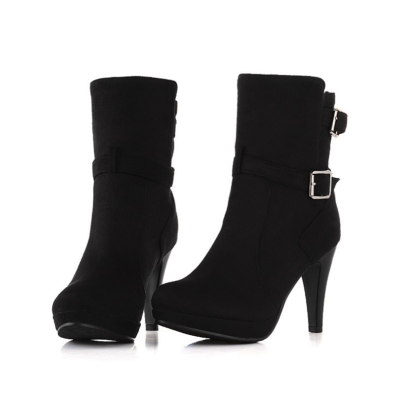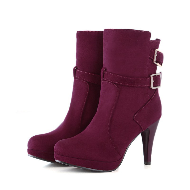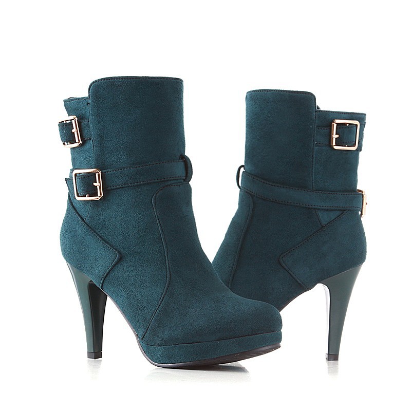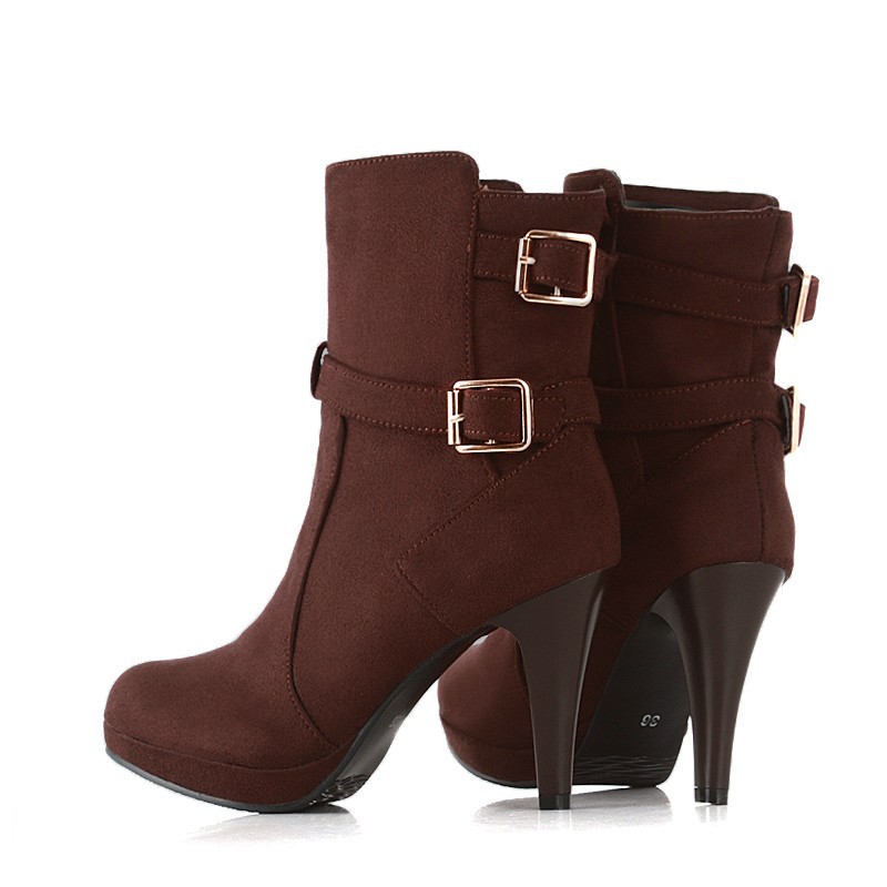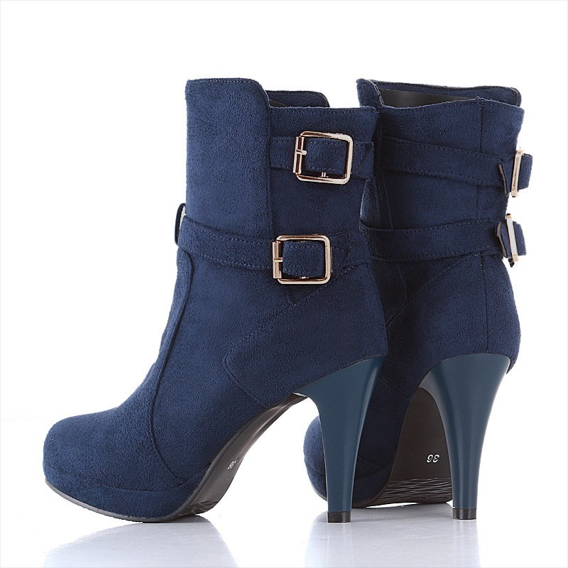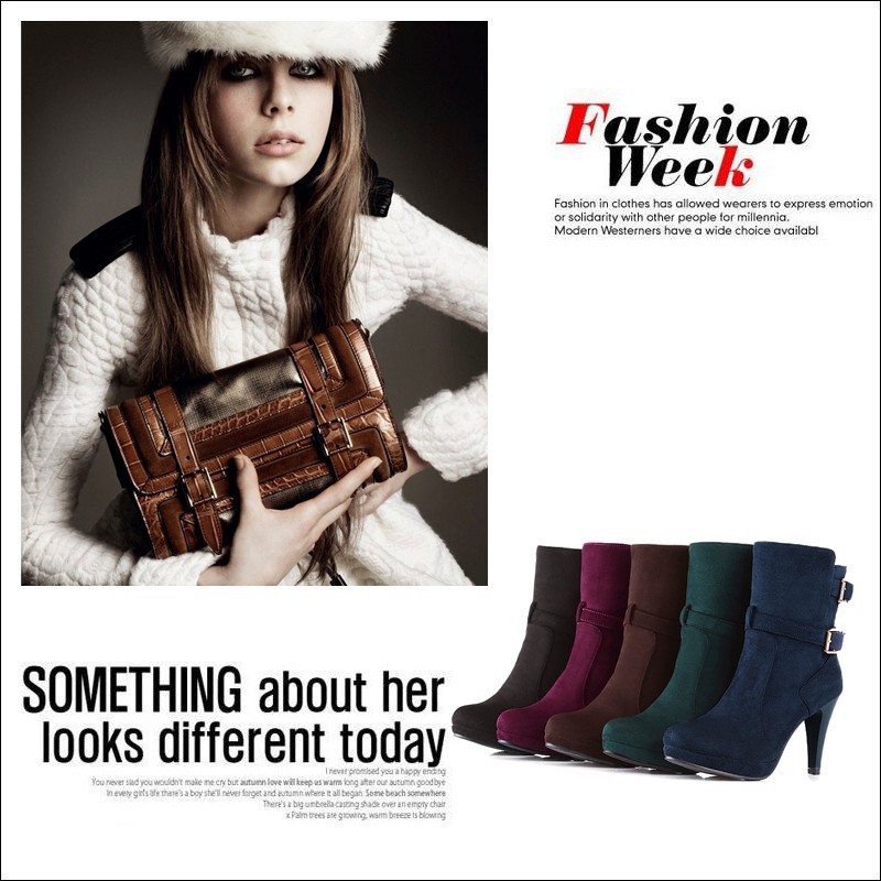 Nubuck leather solid round toe women Thin heel Ankle boots,2014 new square heels metal belt buckle ladies shoes hot on sale