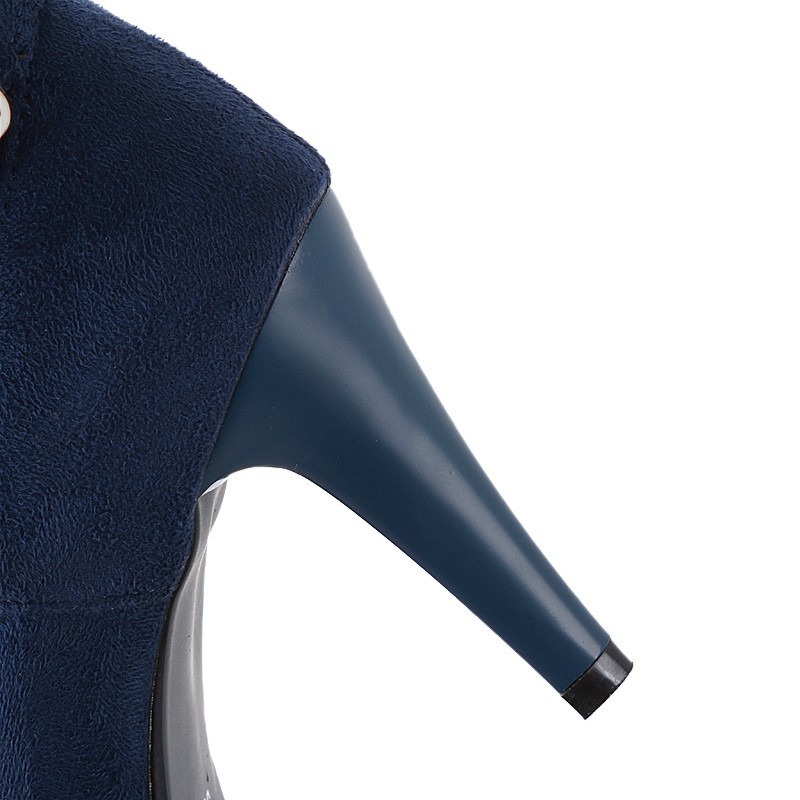 Nubuck leather solid round toe women Thin heel Ankle boots 2014 new square heels metal belt