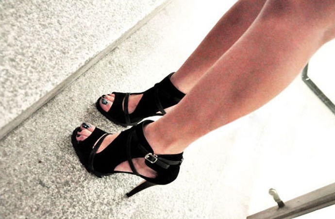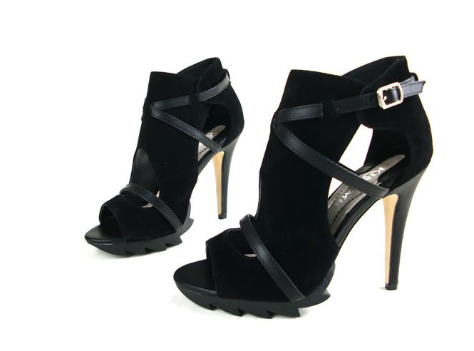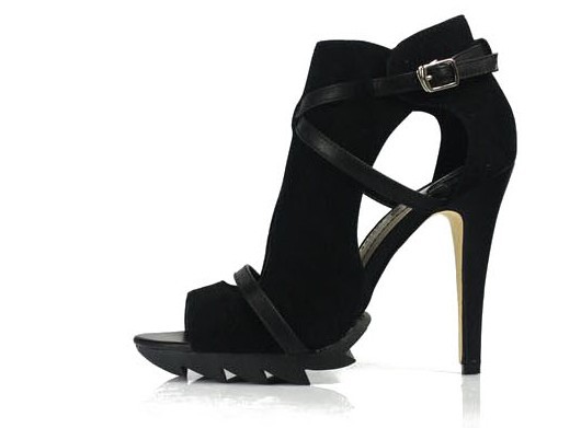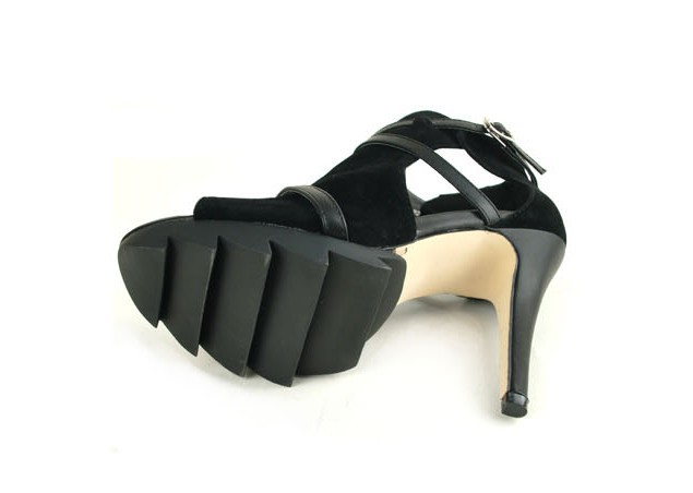 Heel height about 11 cm, platform 1.5 cm.