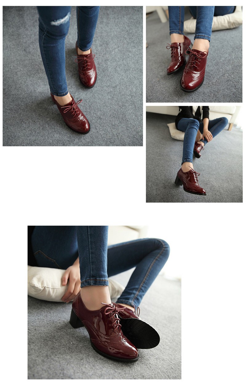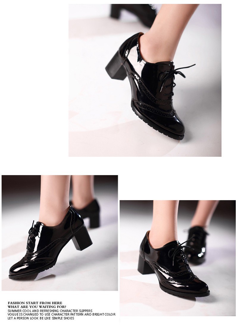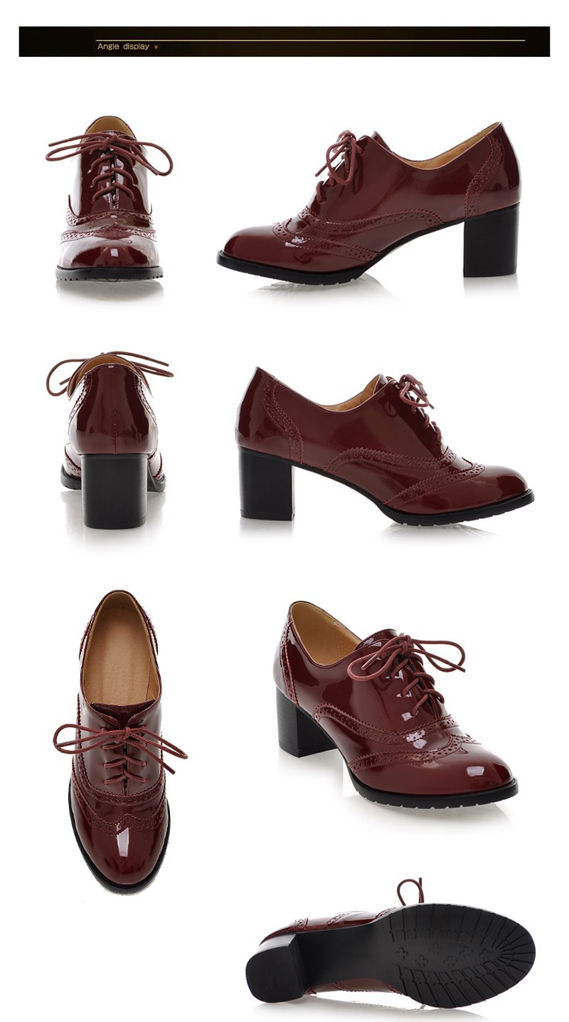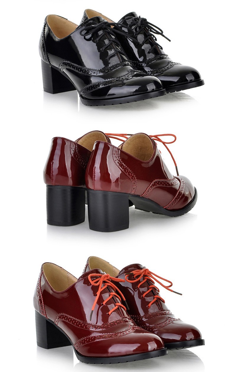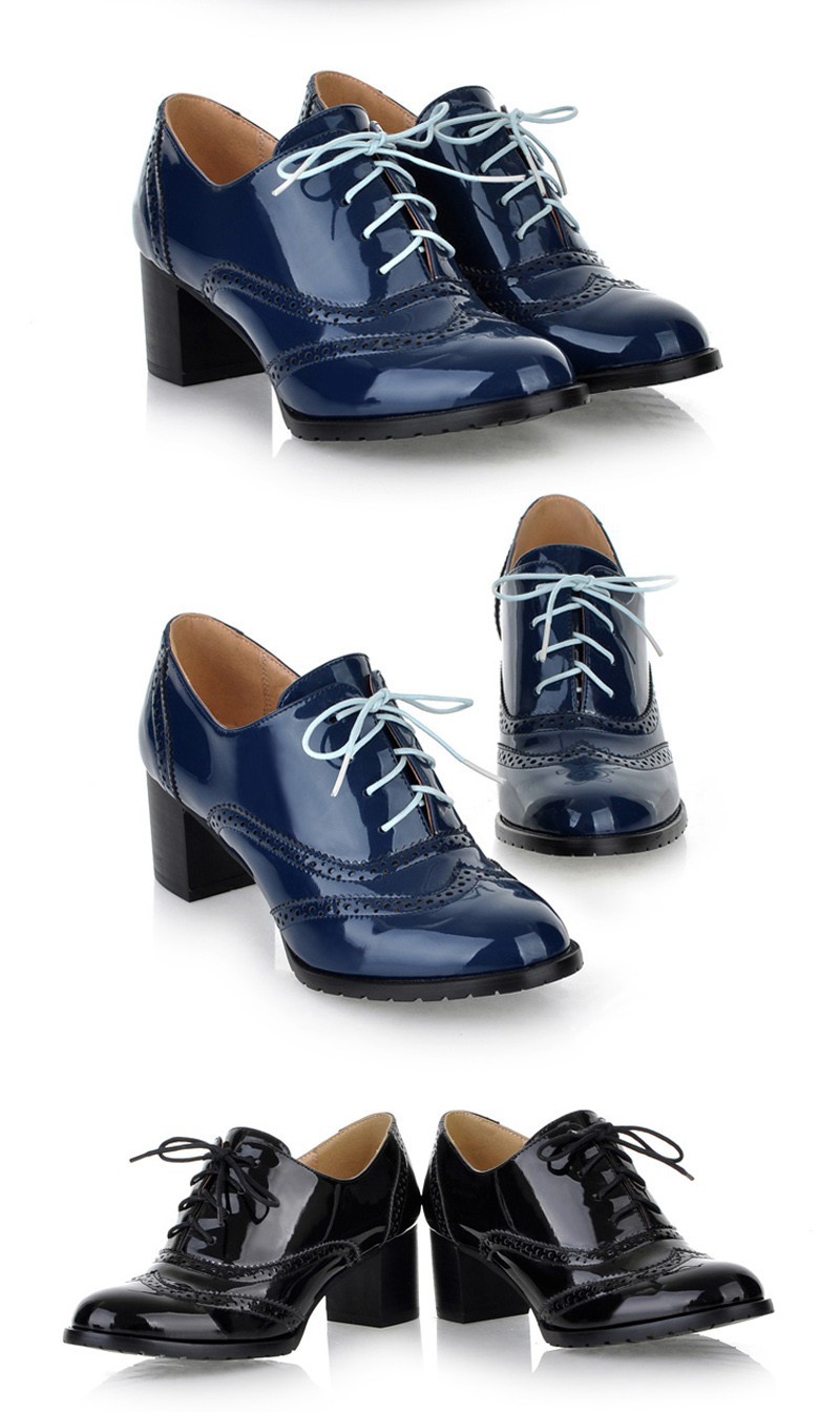 Patent leather oxford shoes women 2014 spring autumn big size 5-9.5 adhesive deep mouth lace up pointed toe shoes free shipping