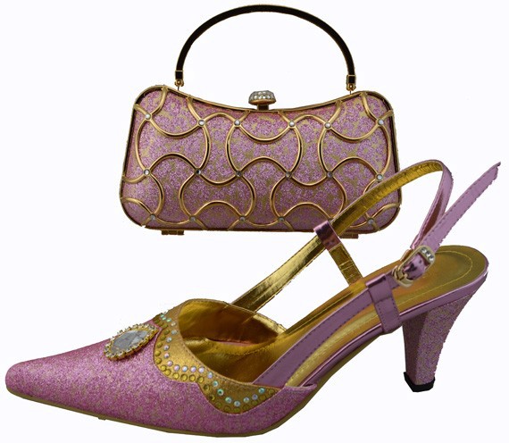 Pink fashion shoe and matching bag set, Wholesale elegant pointed shoe and bag with free shipping by DHL