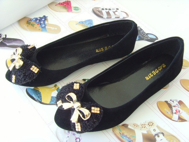 Plus Size 2014 Designer Fashion Women Ballet Flats Toe Shoes Black Bowtie Shoes For Women Free Shipping