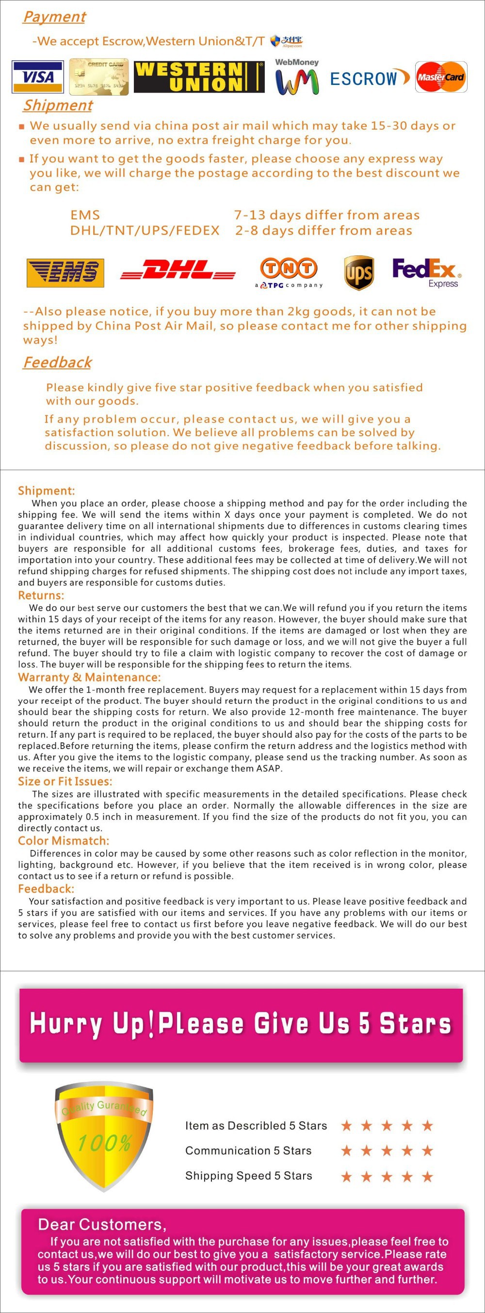 | 45 days Money back Returns accepted if product not as described, buyer pays return shipping; or keep the product & agree refund with seller. | |