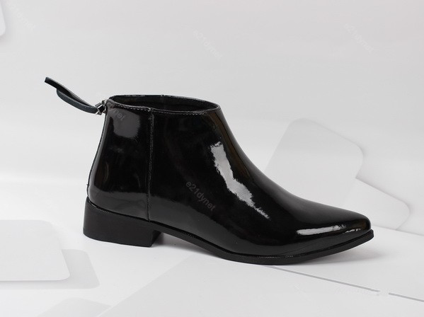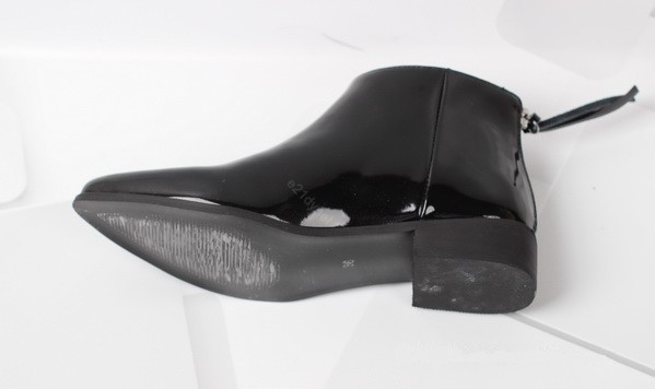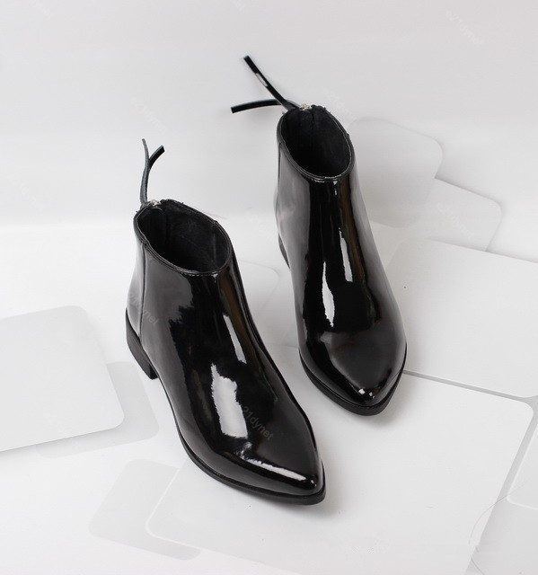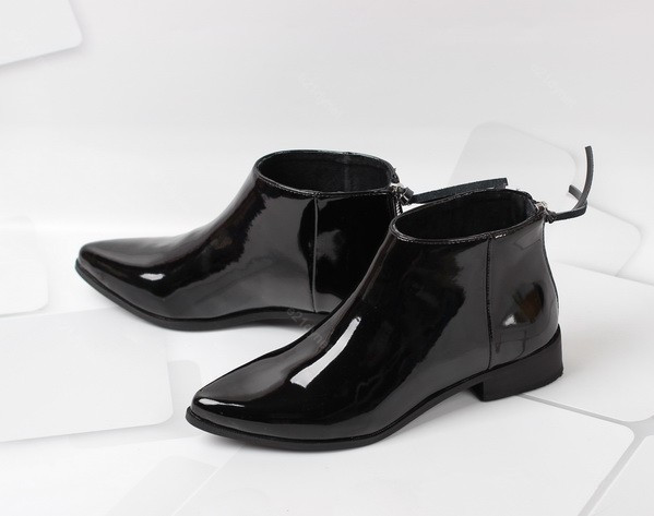 Pointed ankle boots low heels autumn motorcycle boots womens black patent leather boots