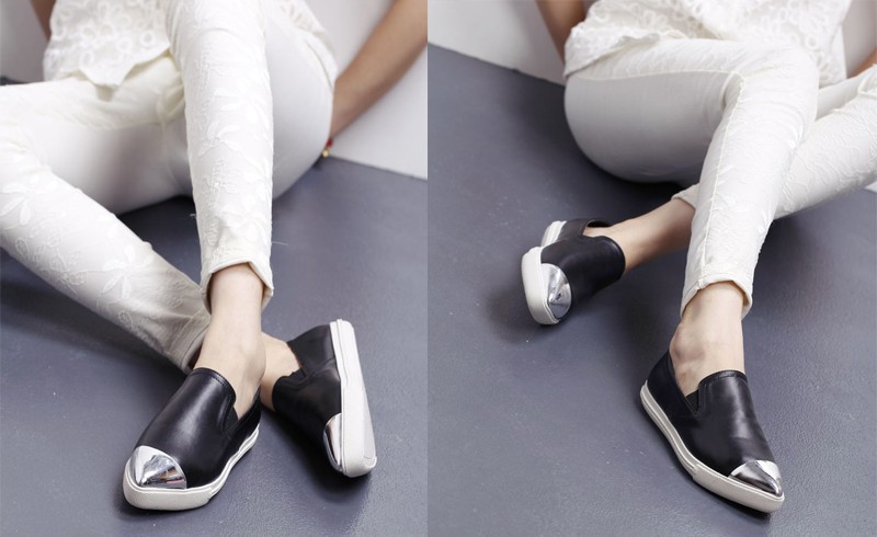 Hot 2014 New Fashion Ladies Cute Genuine Leather Ballet Casual Womens Shoes White Loafers Low Heel Comfort Flats 5